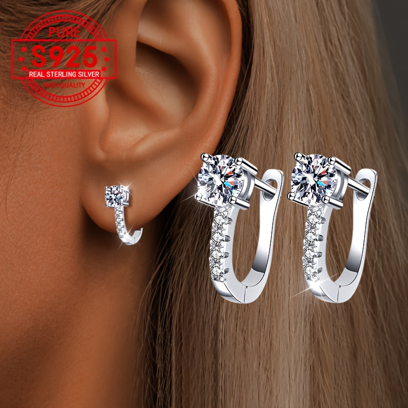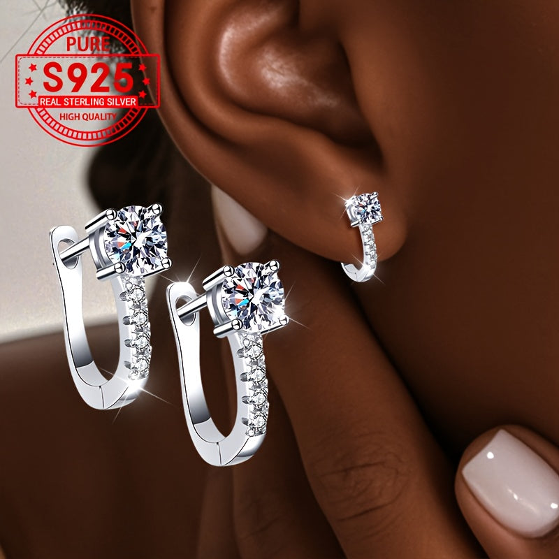 Elegant pair of ladies' earrings with synthetic cubic zirconia studs in 2.7g of sterling silver. Perfect for any occasion.