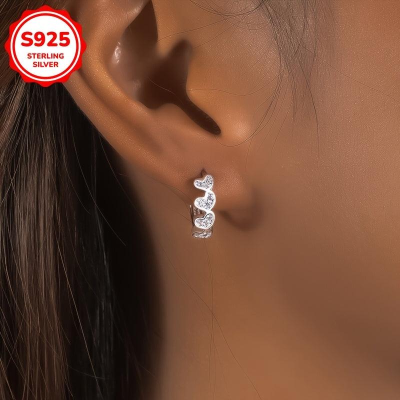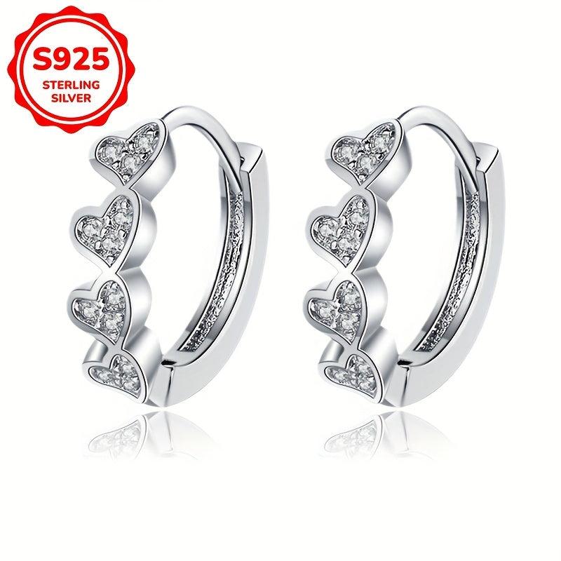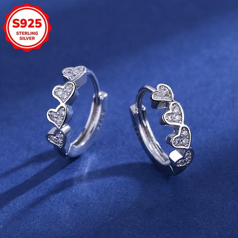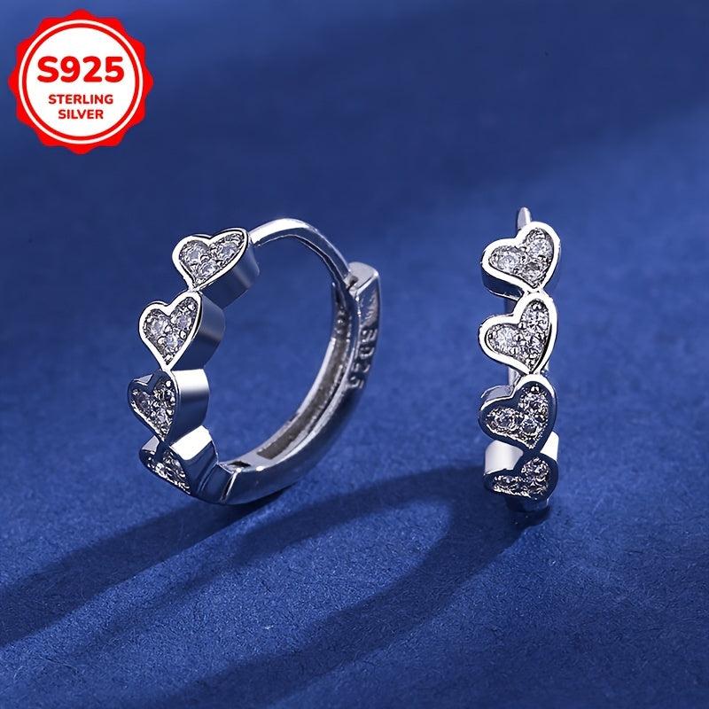 Enhance your look with these elegant ring earrings featuring Synthetic Zirconia hearts. Made of 925 silver, these lightweight earrings are perfect for daily wear.
