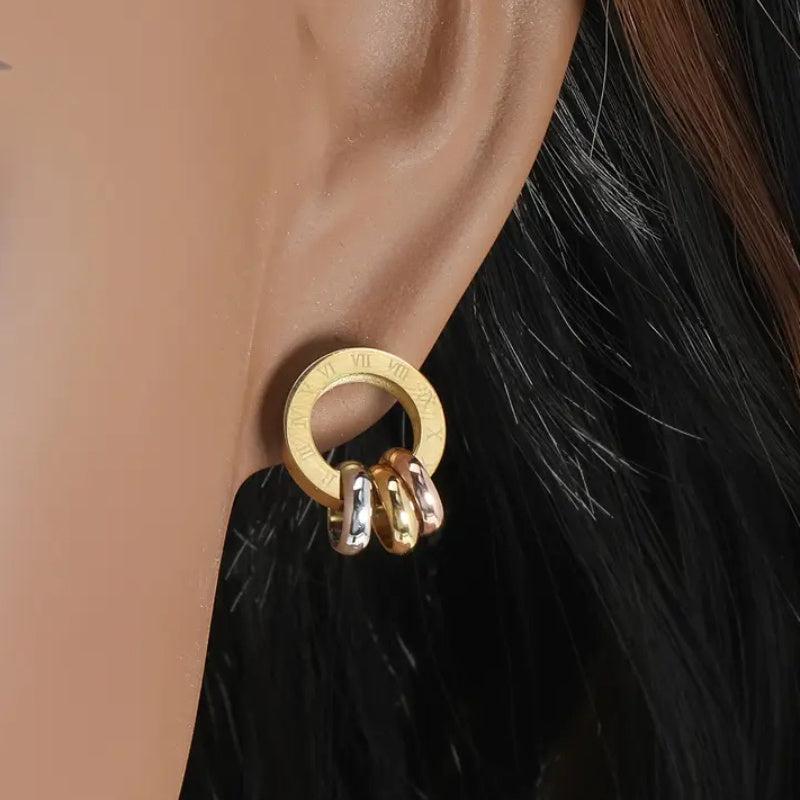 These golden hoop earrings with Roman numeral design and hollow details are perfect for daily wear, parties, and Valentine's Day. They are a stylish addition to your earring collection.