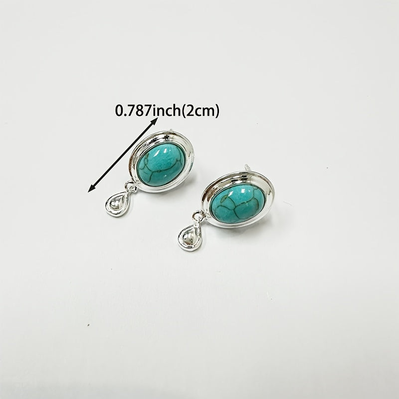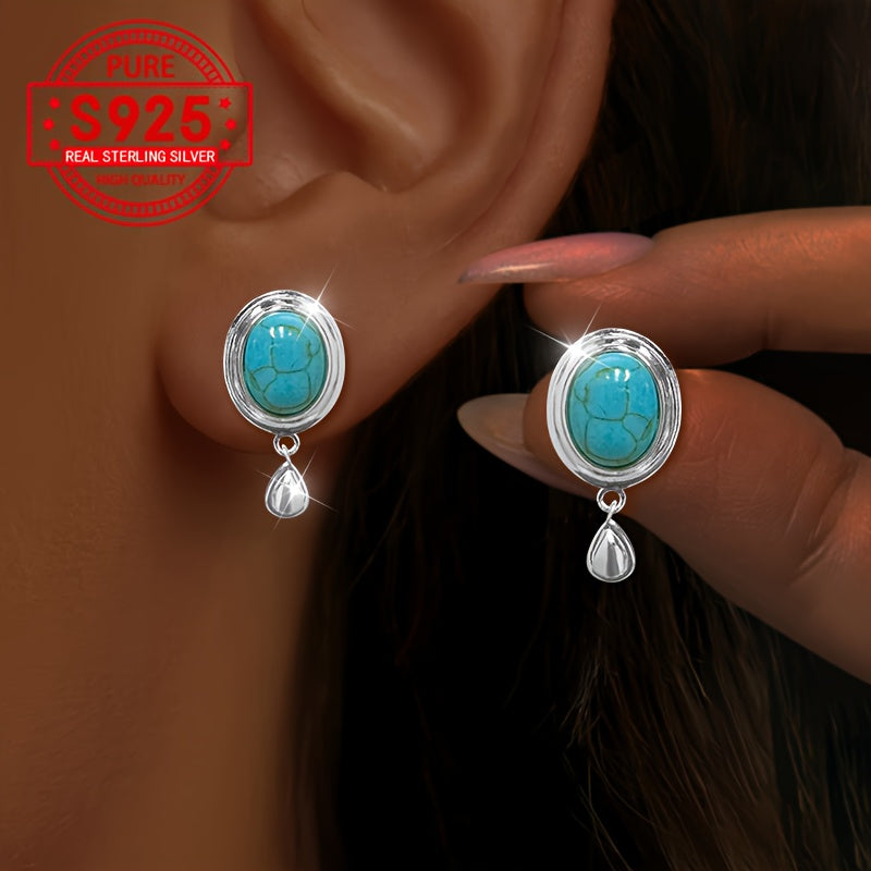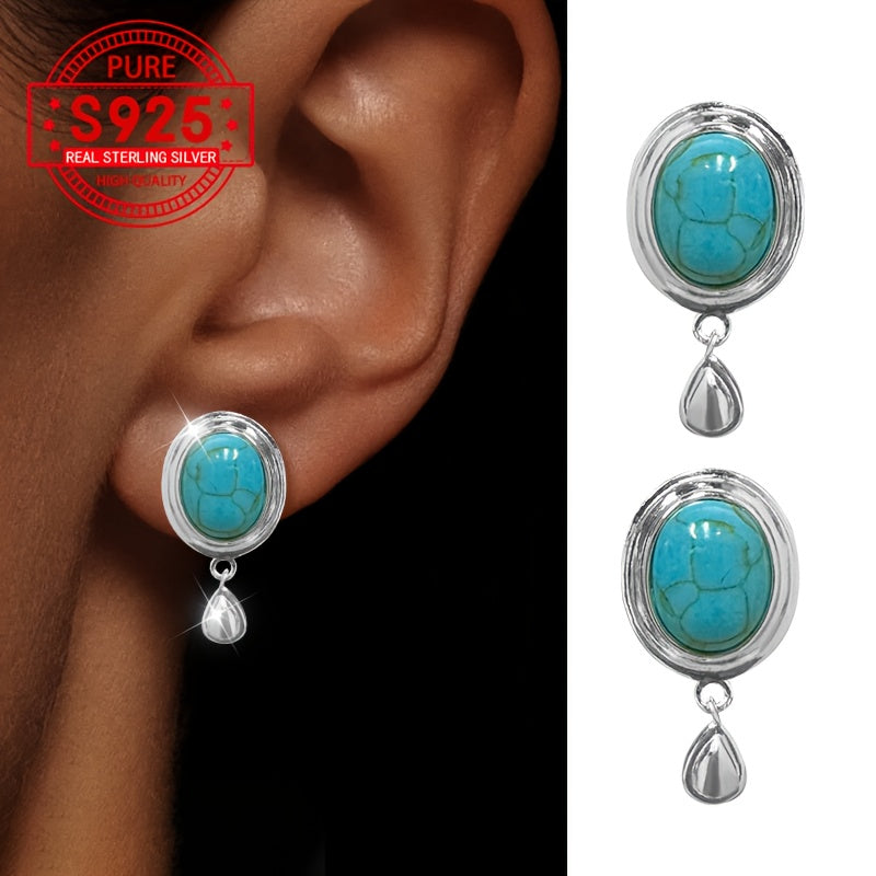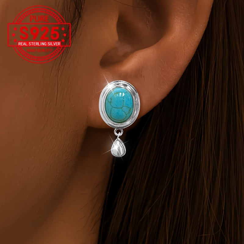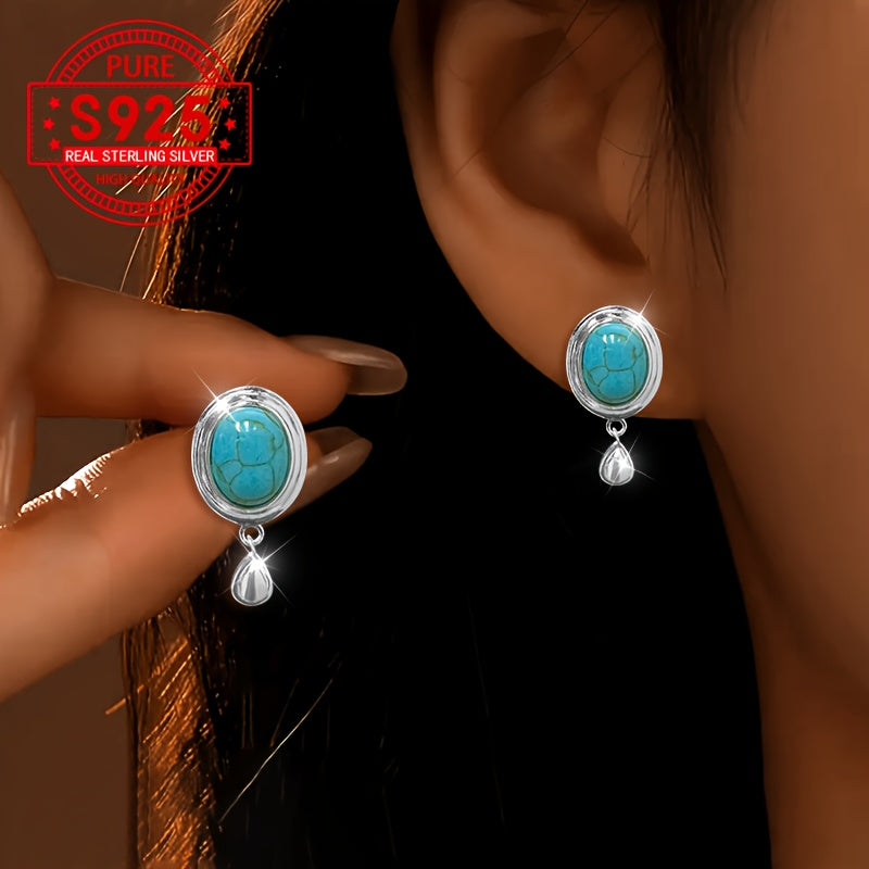 Elevate your look with these chic earrings featuring synthetic turquoise and teardrop of S925 silver. Ideal for parties and vacations, these accessories will make you stand out.