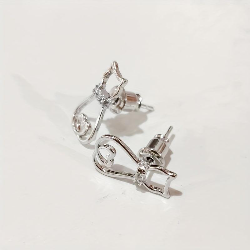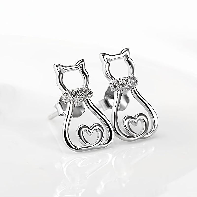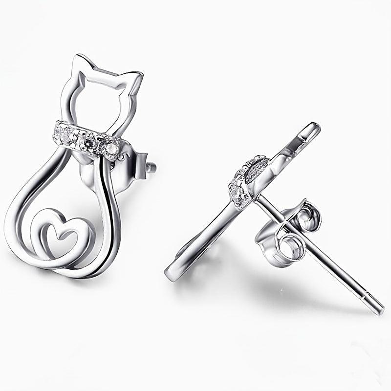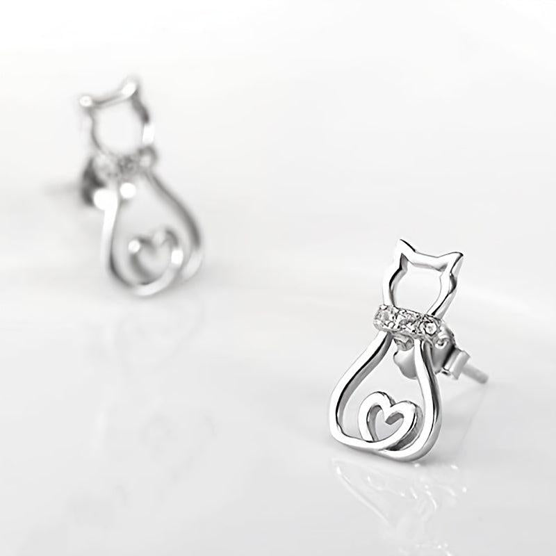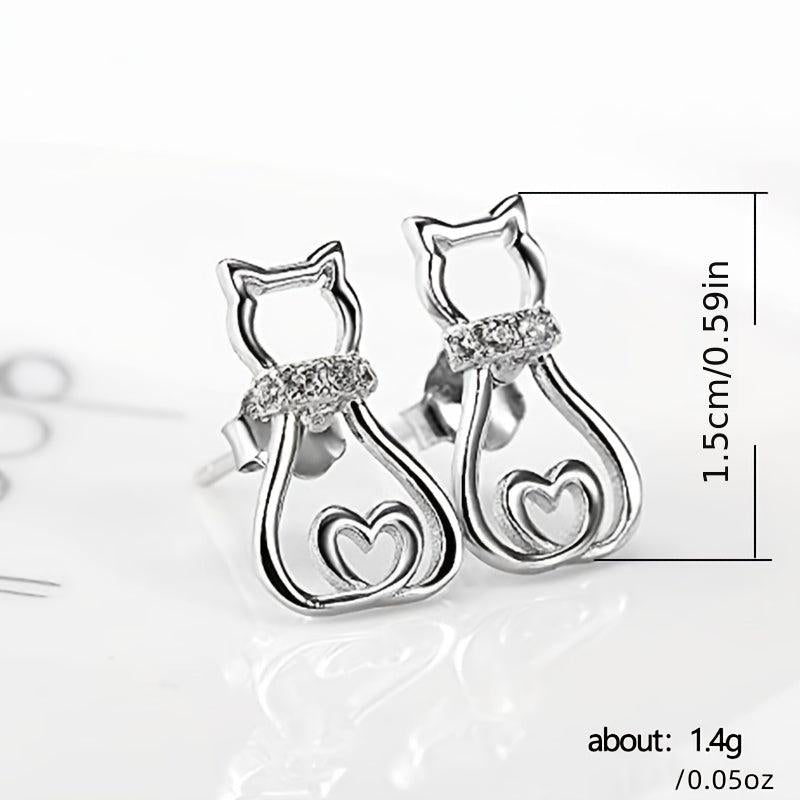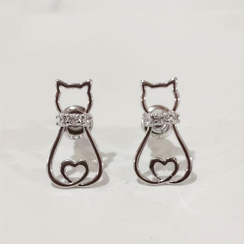 These stylish cat earrings feature a hollow out design with synthetic zirconia stones for a sweet and elegant look. Perfect for cat lovers!