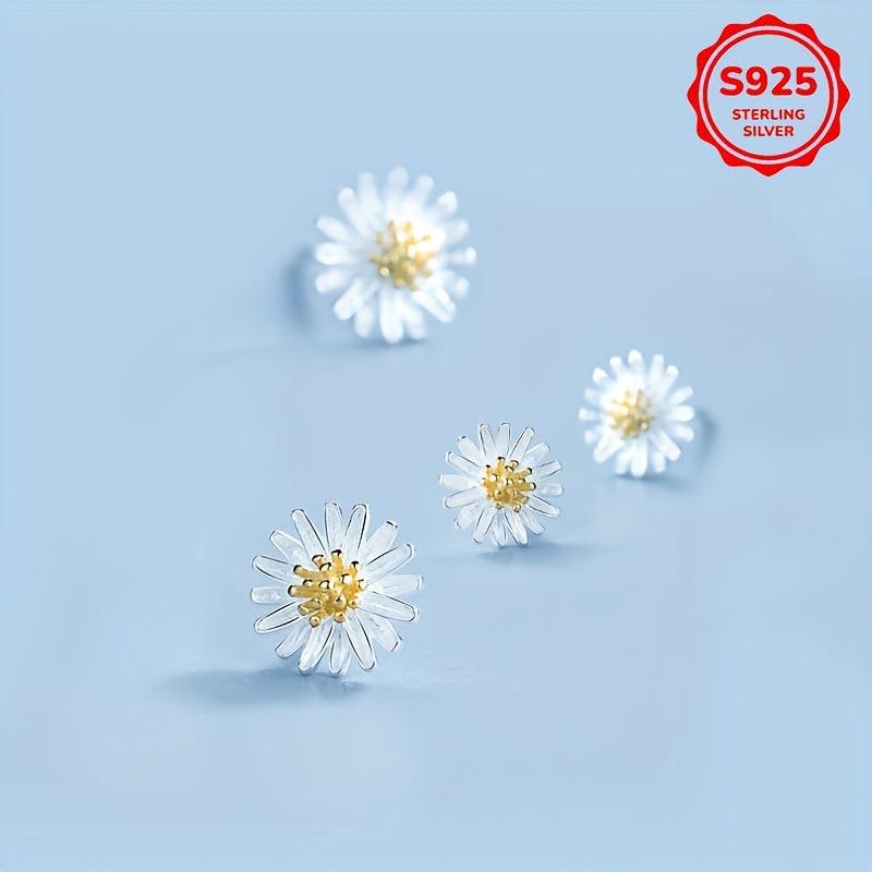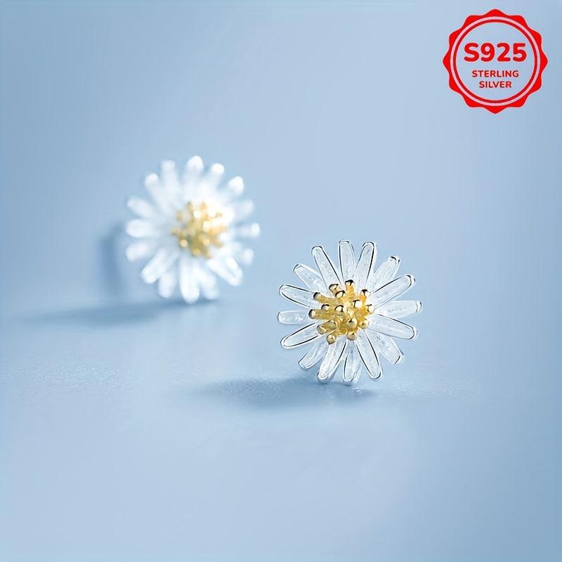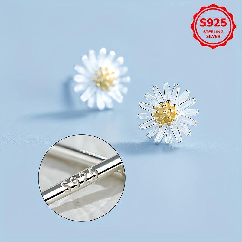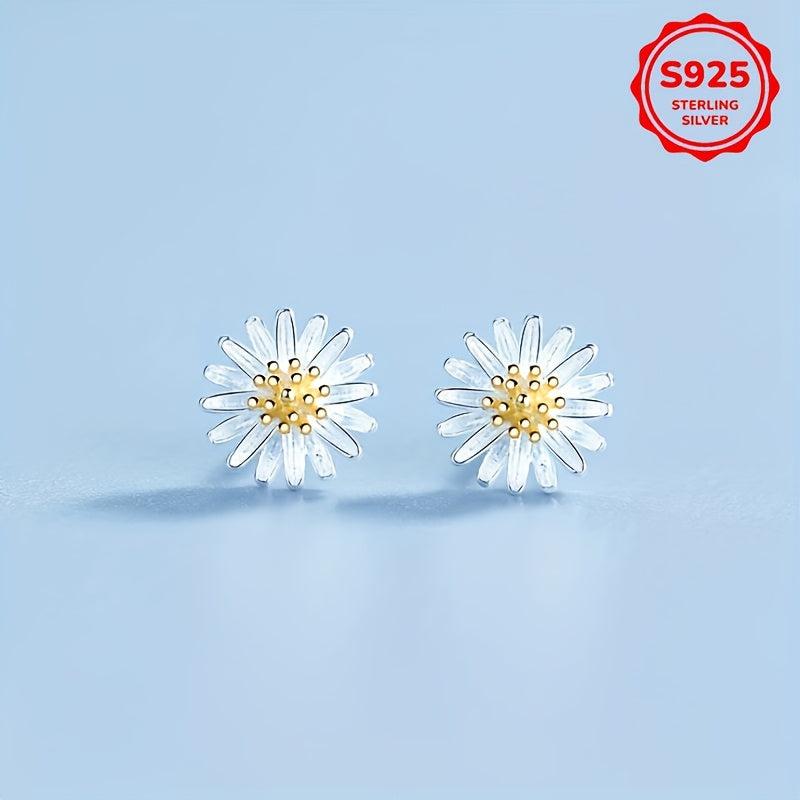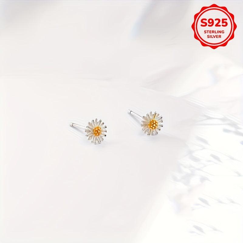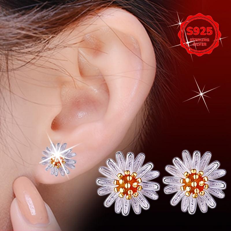 Delicate Sunflower stud earrings made of 0.5g S925 silver, perfect gift for Christmas for your girlfriend.