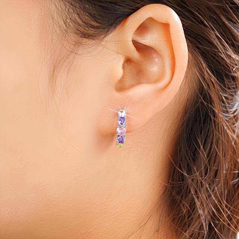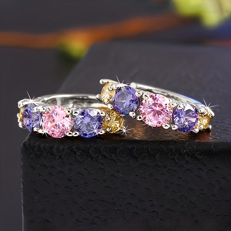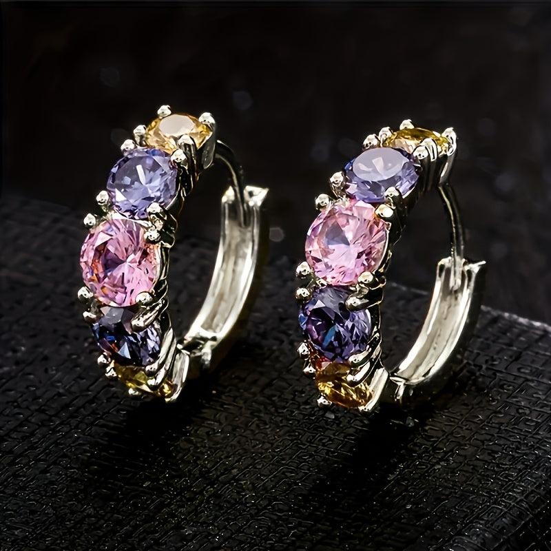 Complete your look with these stunning hoop earrings featuring inlaid synthetic gemstones. Perfect accessory for birthdays and special occasions.