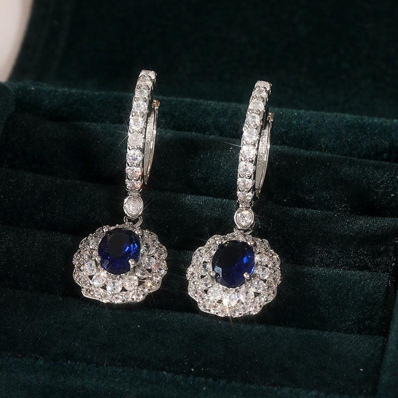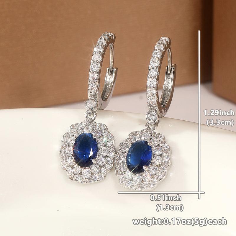 Synthetic Sapphire Earrings & Pendant Set - Elegant Jewelry