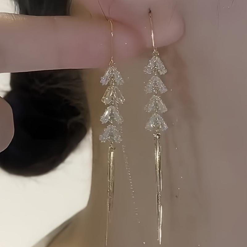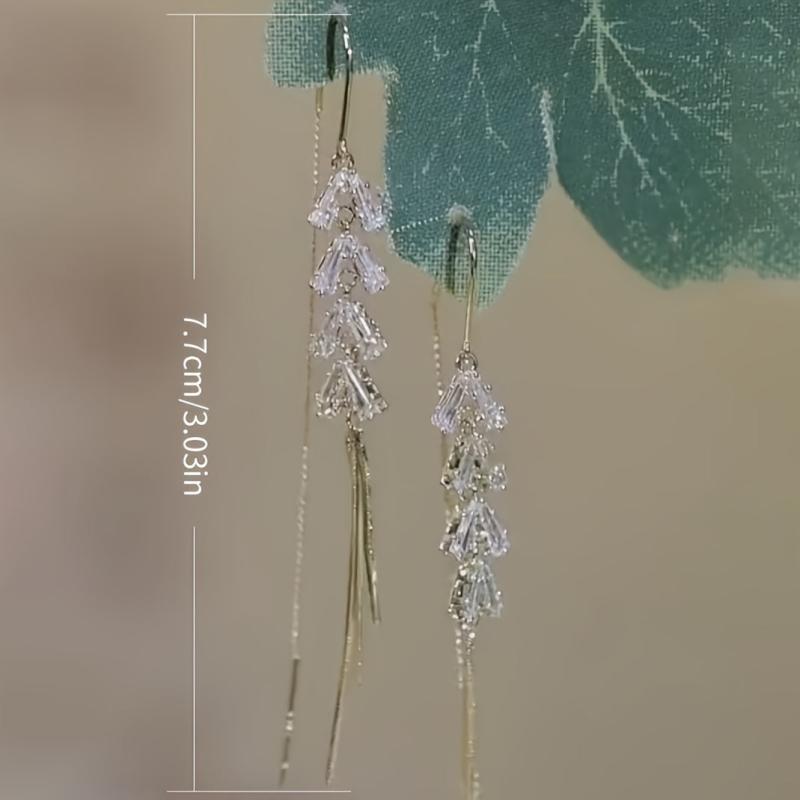 These elegant drop earrings feature a tassel wheat sheaf design with synthetic zirconia stones. Made of zinc alloy with stainless steel posts, they are perfect for both daily wear and special occasions.