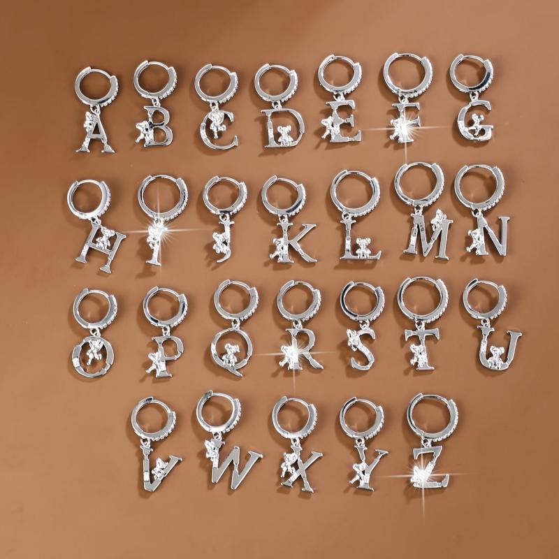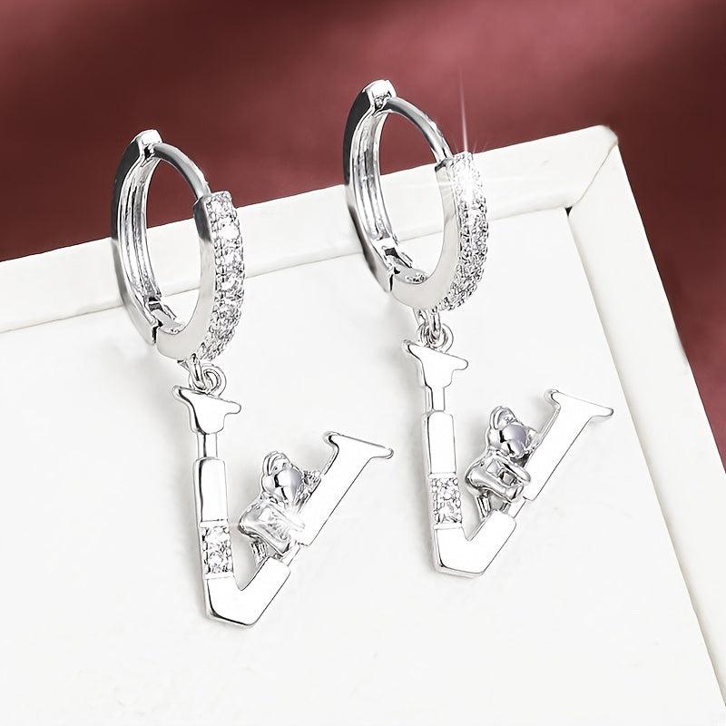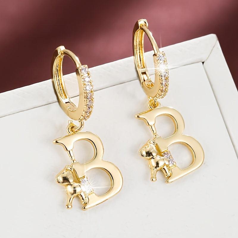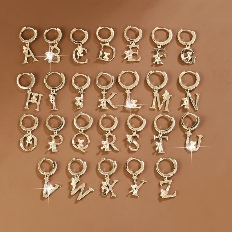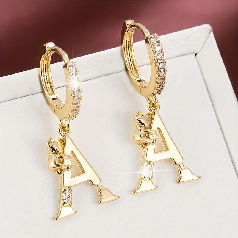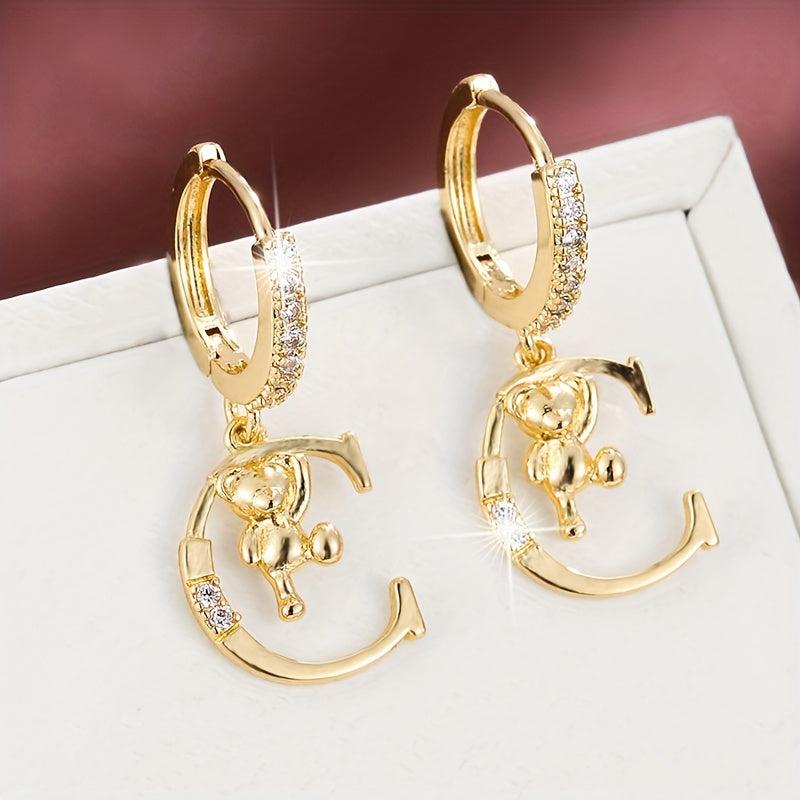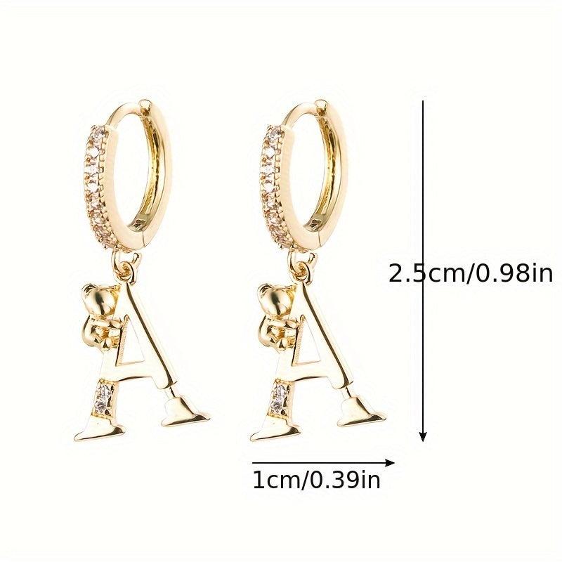 These adorable copper earrings feature delicate teddy bear and letter charms with synthetic zirconia. Perfect for everyday wear or gift occasions.