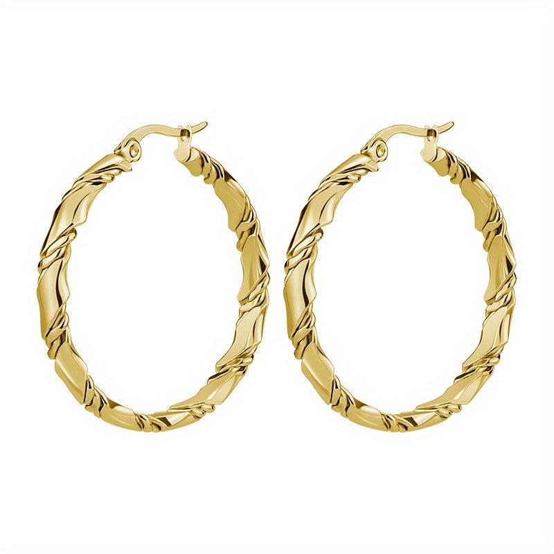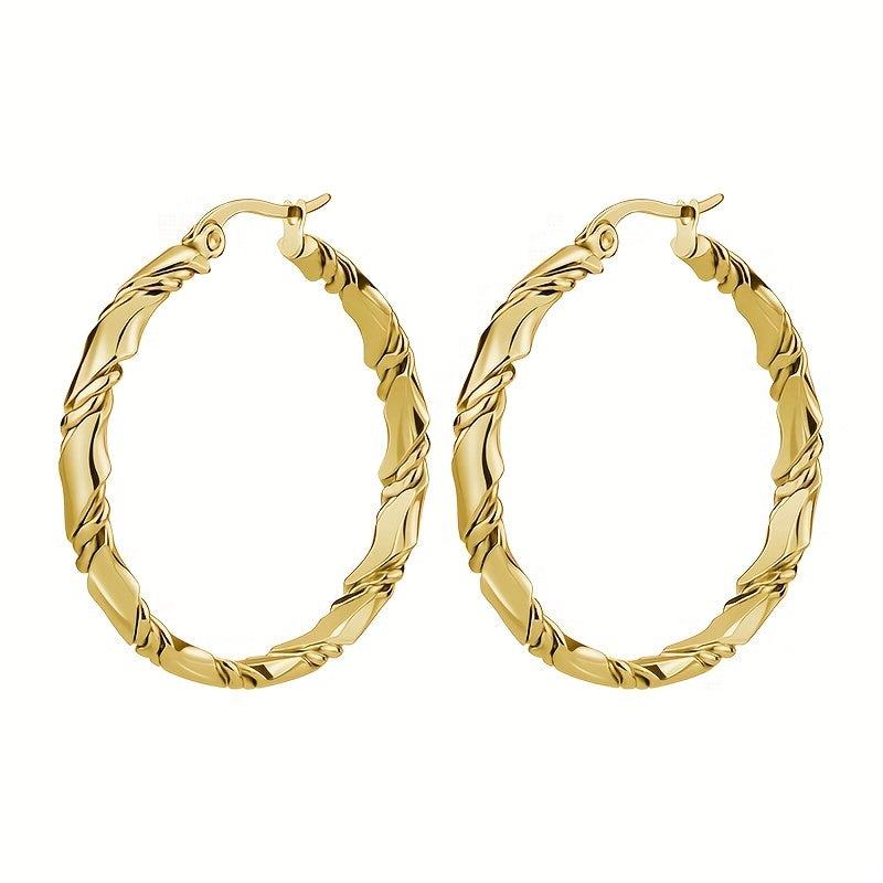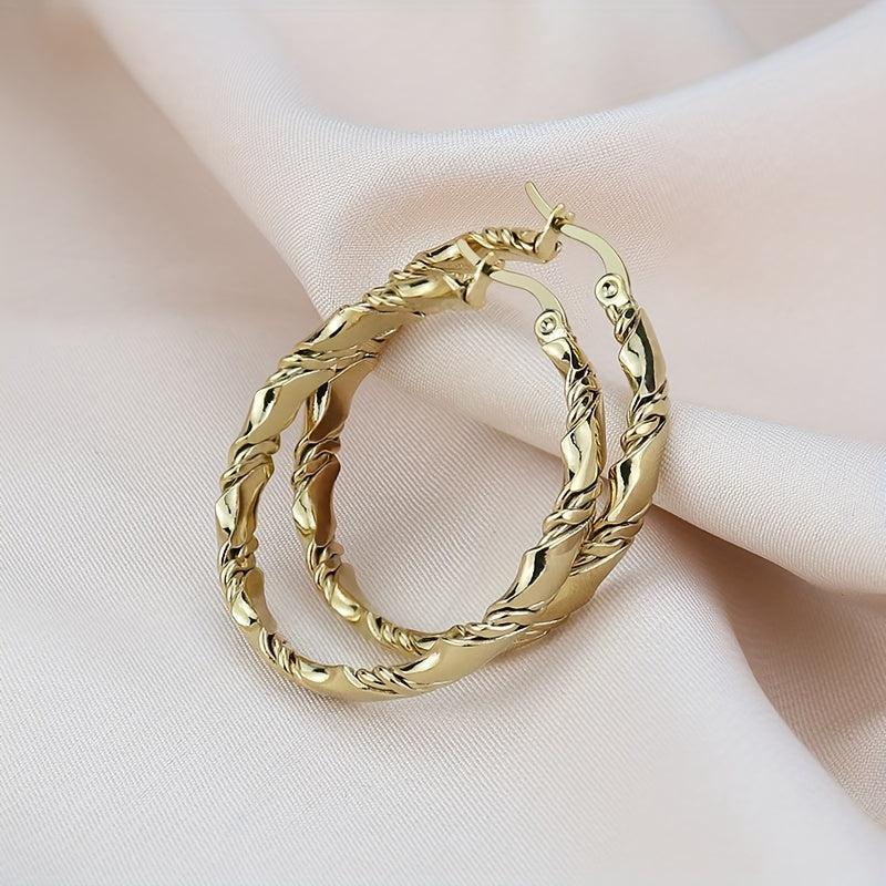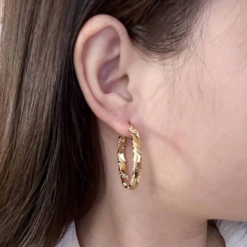 Elevate your casual attire with these golden toned twisted hoop earrings. The textured surface adds a touch of uniqueness to your look.