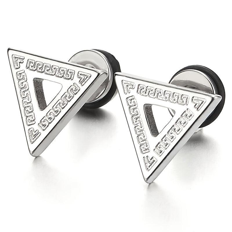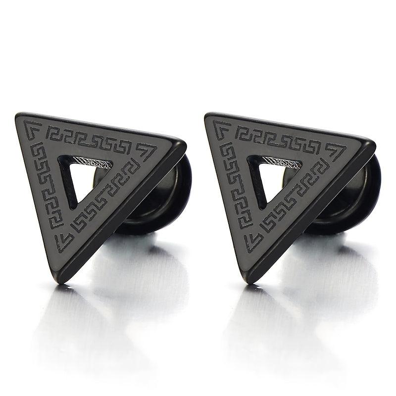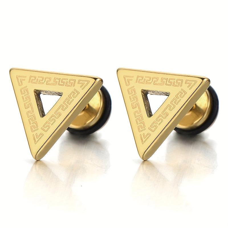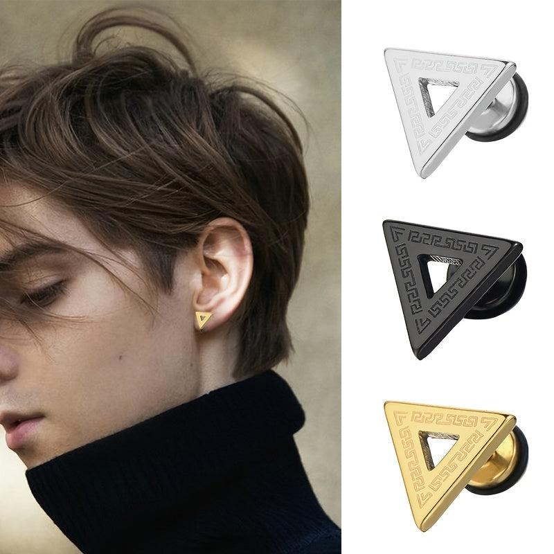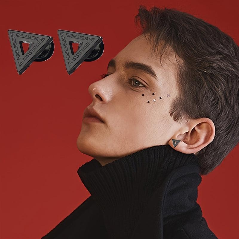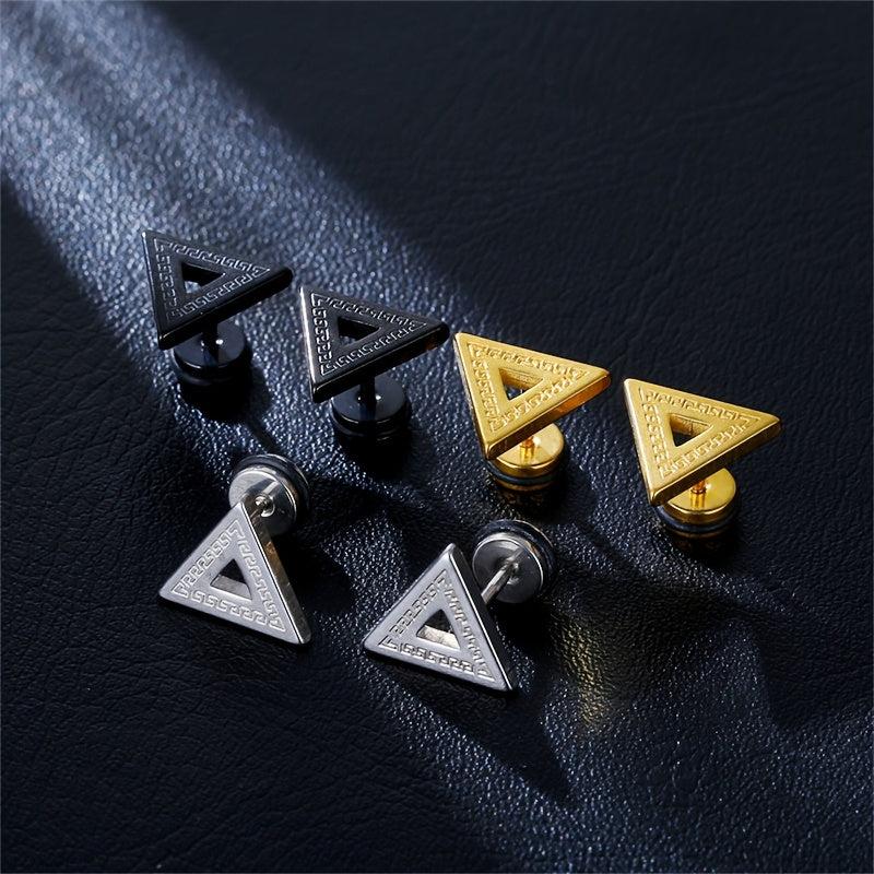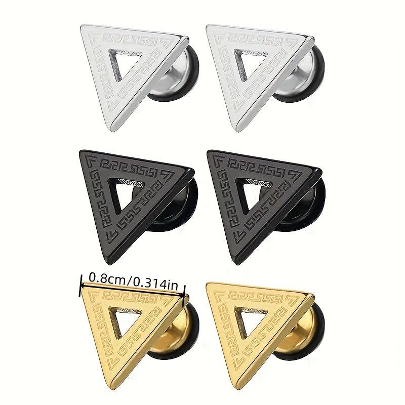 Elevate your accessory game with this set of 2 stylish triangle stud earrings crafted from titanium steel. These earrings exude high-end fashion and versatility.