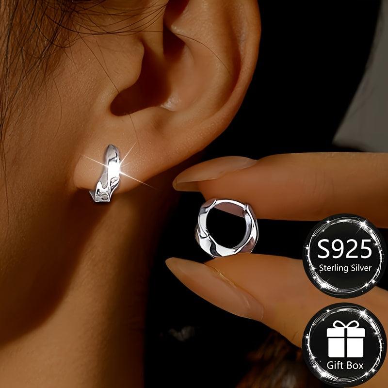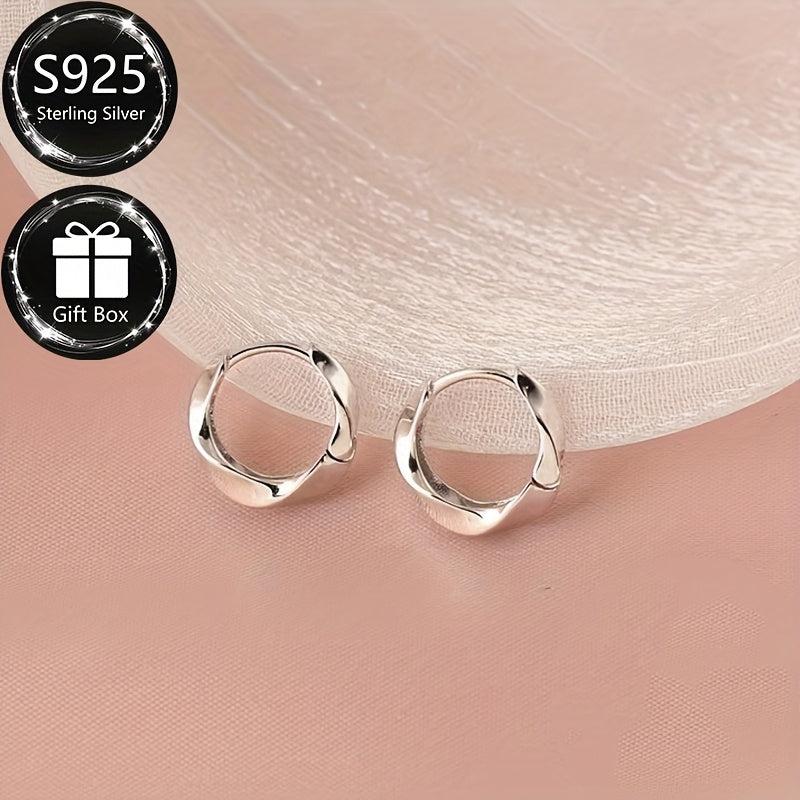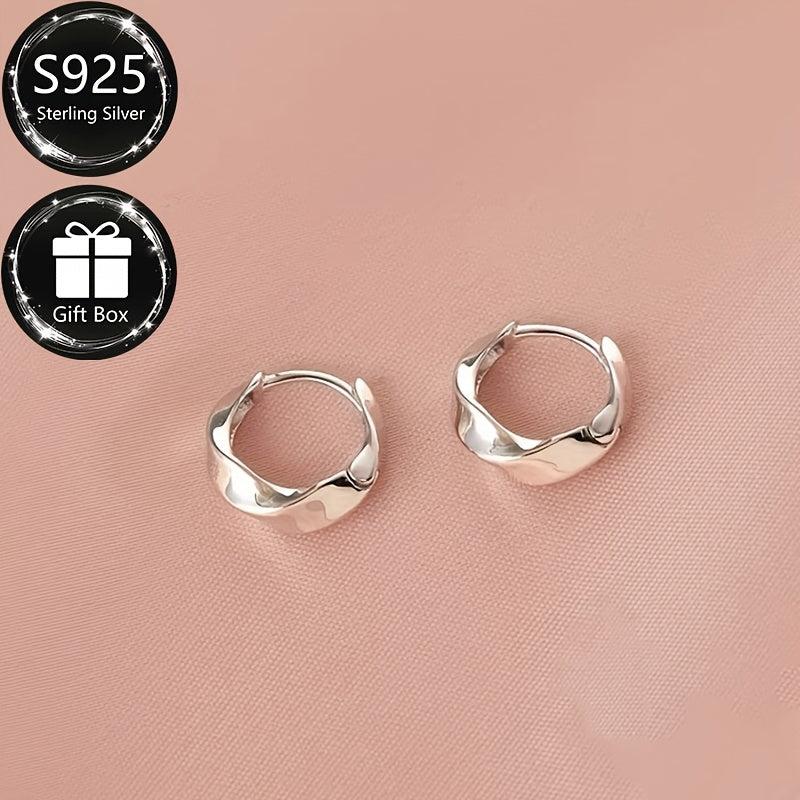 Add a touch of elegance to your everyday look with these S925 pure silver hoop earrings featuring a unique twisted luster surface. These earrings are perfect for daily wear with a low irritation weight of 2.15 grams.