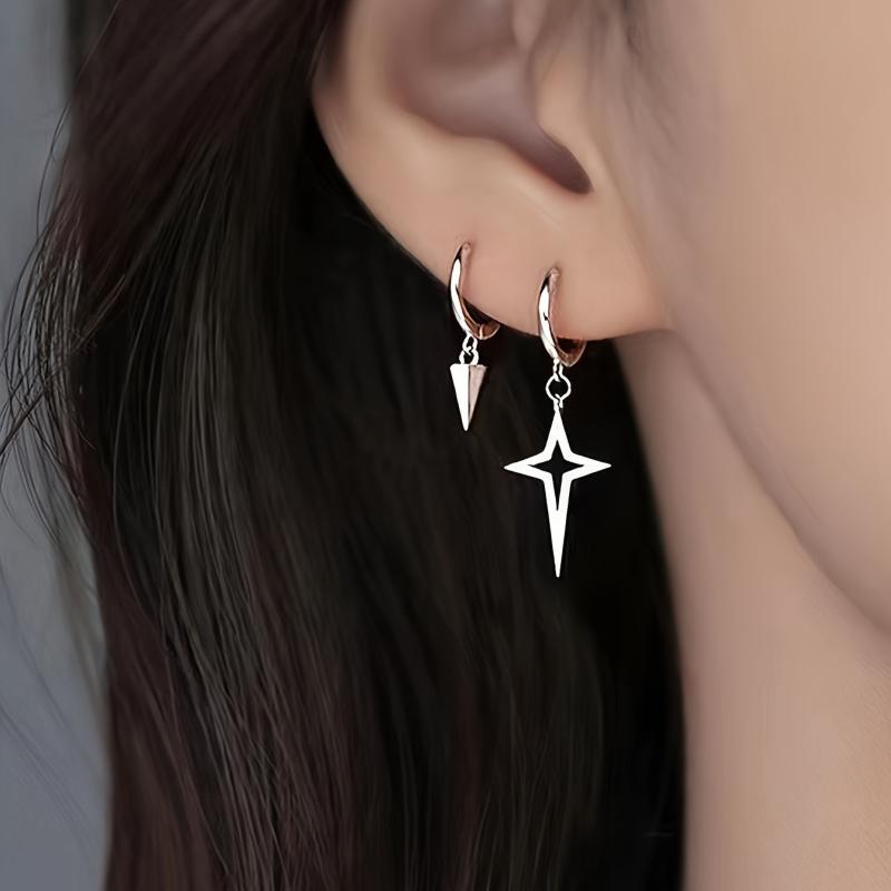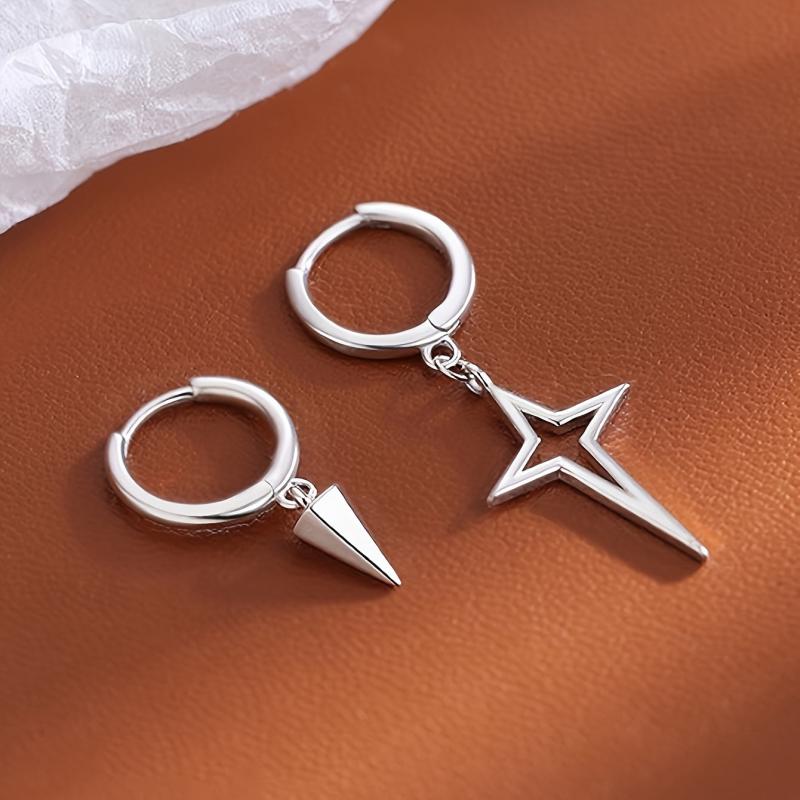 These hoop earrings are a stylish and edgy accessory for women who love vintage punk style. The asymmetric star design adds a unique touch to any outfit.