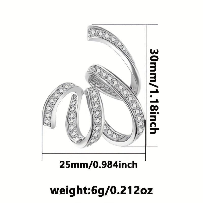 These stylish stud earrings feature an exaggerated design with unique lines wrapped in zirconia, perfect for daily wear or parties. Made of 925 silver, lightweight at 5g, ideal for Holi celebrations.