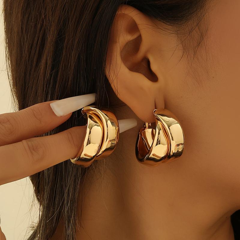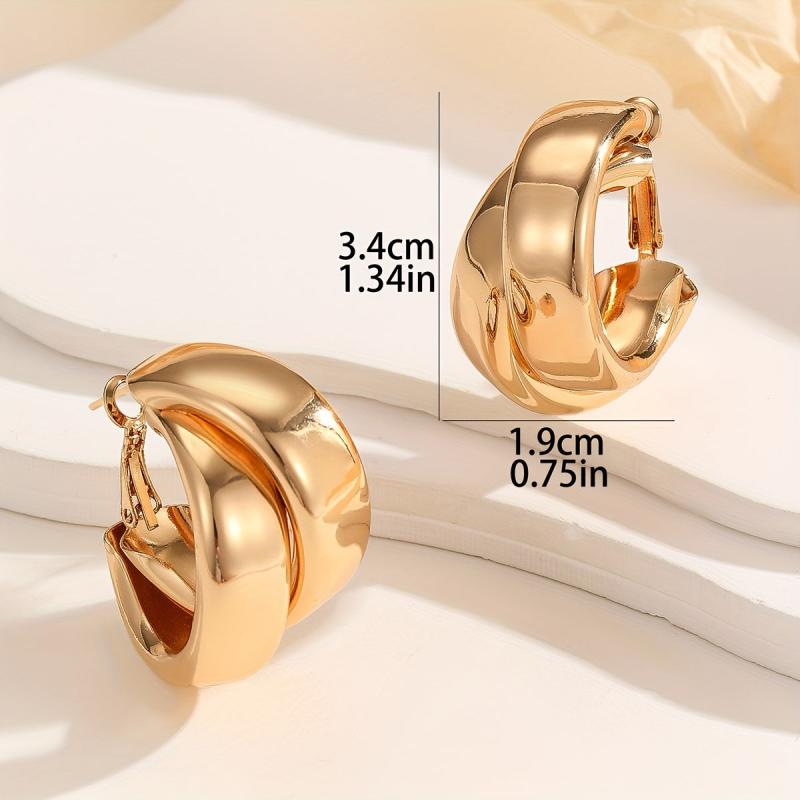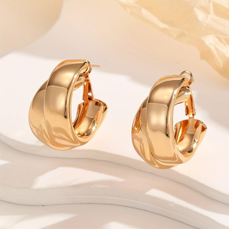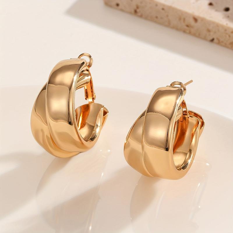 Elevate your look with these urban geometric hoop earrings. These C-shaped earrings are made from 18K golden plated iron with stainless steel posts, perfect for making a statement.