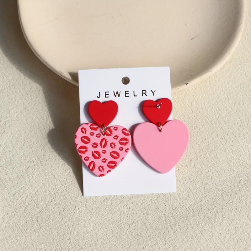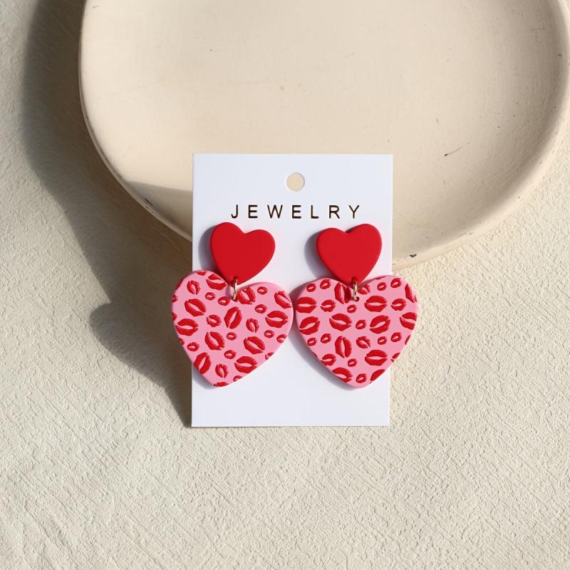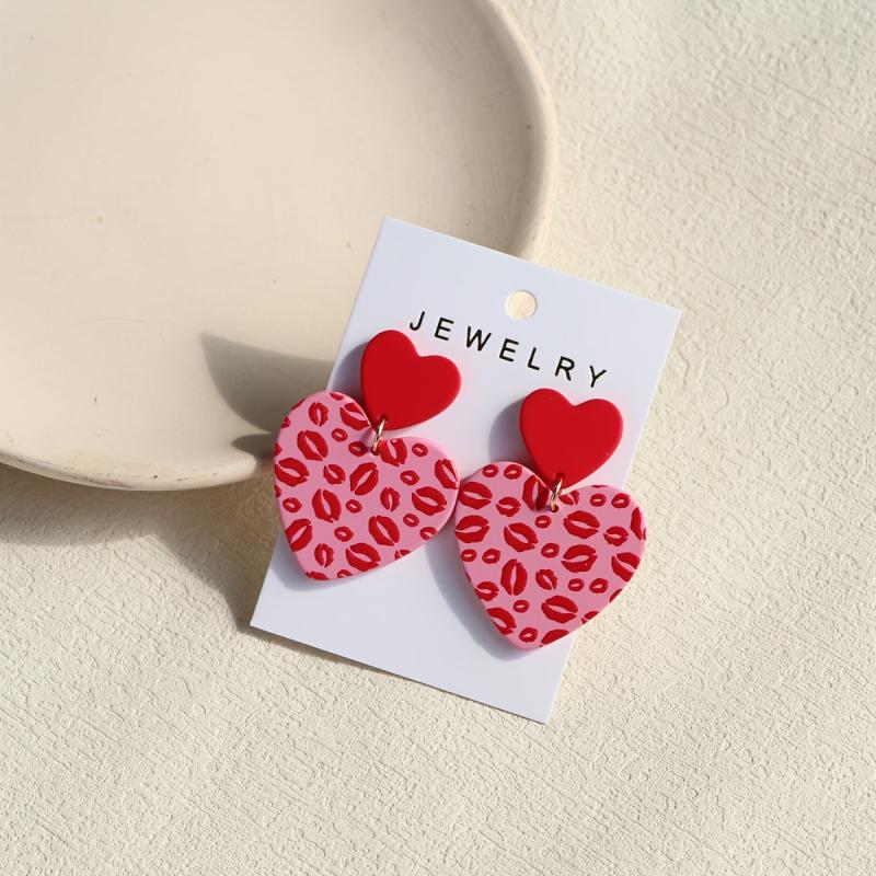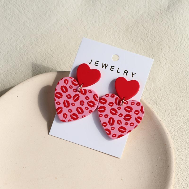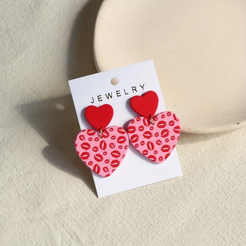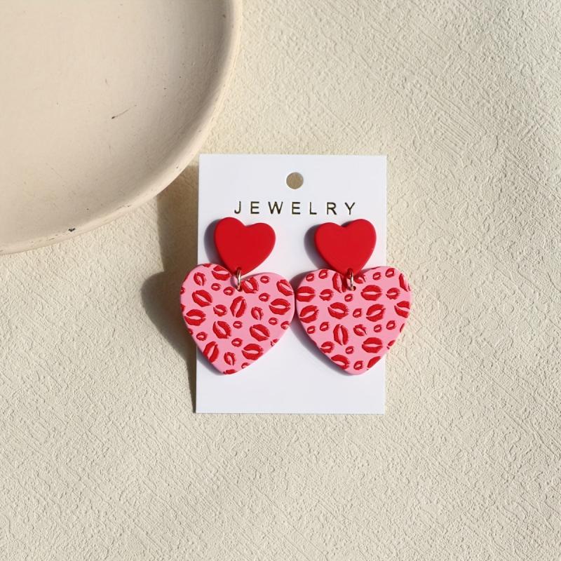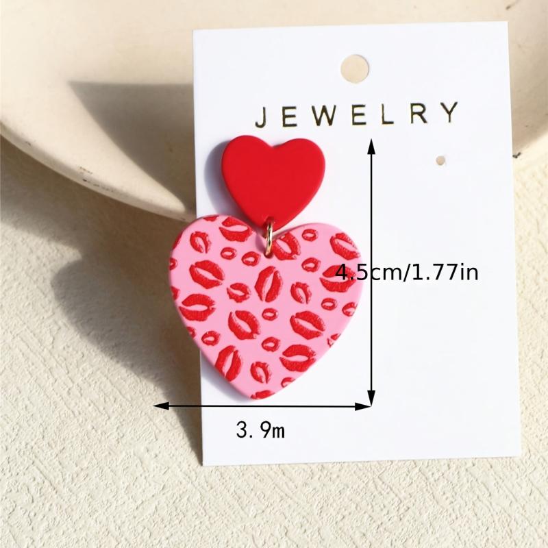 Show your love with these adorable heart-shaped earrings featuring a red and pink kiss print design. Made with stainless steel posts, these earrings are perfect for daily wear.