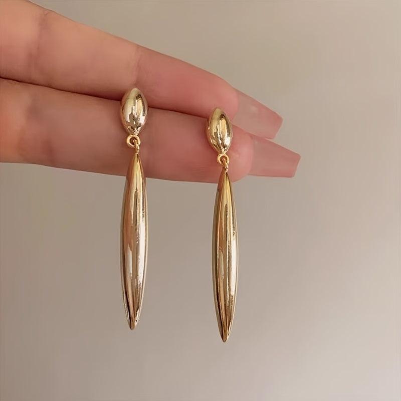 These minimalist drop earrings in copper are perfect for parties or casual attire. The vertical line design adds a touch of elegance to any outfit.