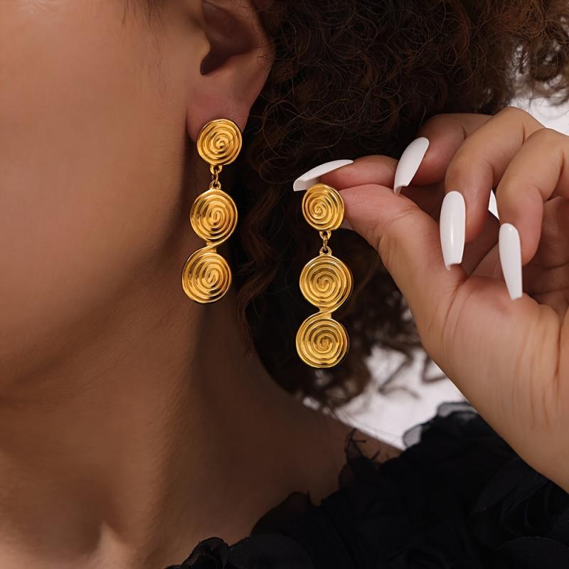 Add a touch of elegance to your outfit with these vintage-inspired hoop earrings. Made of durable 316 stainless steel with a golden finish, these earrings are perfect for parties or as a gift.