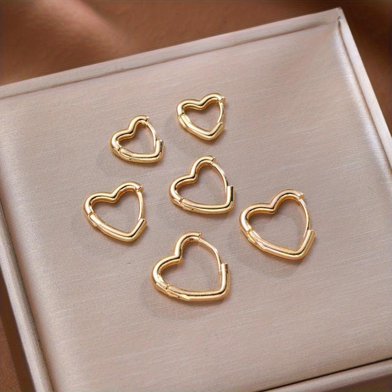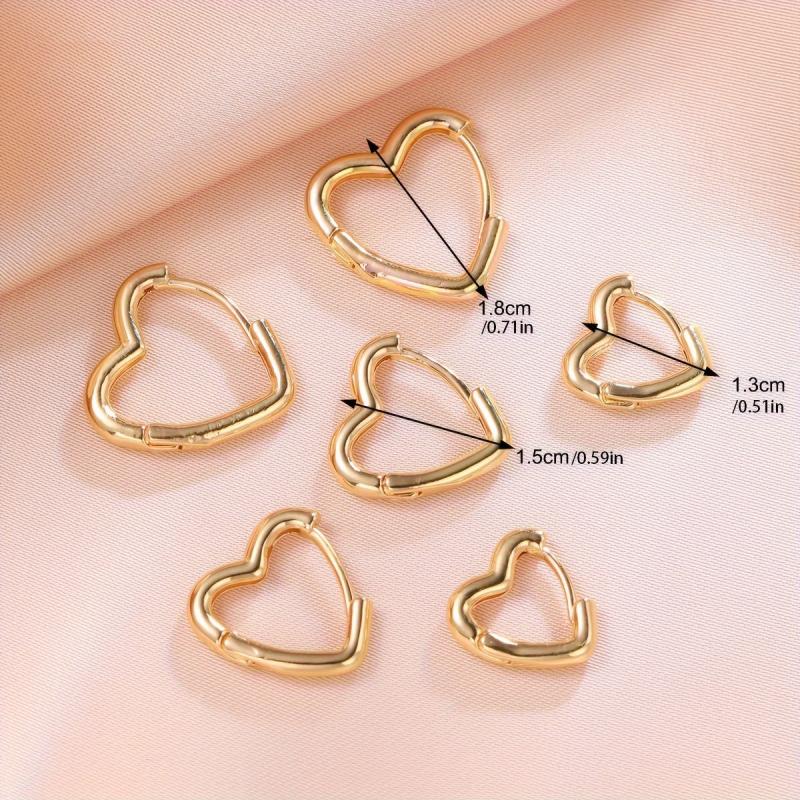 This set includes 6 heart-shaped copper earrings with stainless steel studs, perfect for daily wear. Makes a great gift for Ramadan or any season. Accessorize in style!