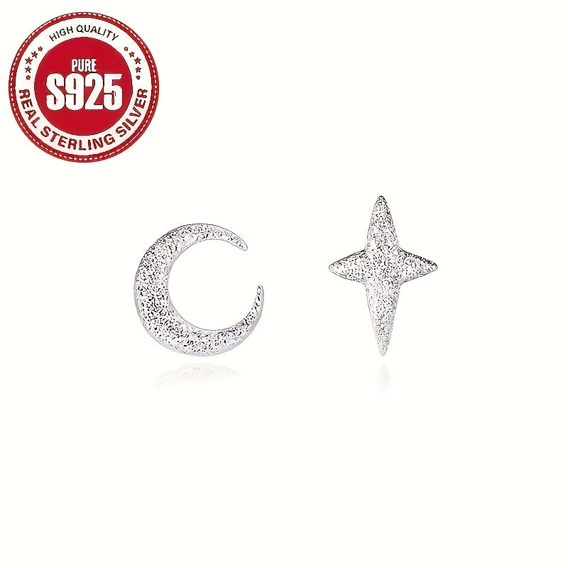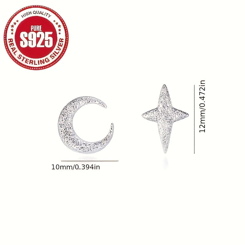 These elegant earrings feature a unique star and moon design, crafted in S925 pure silver. Perfect for daily wear or as a thoughtful gift for a loved one.