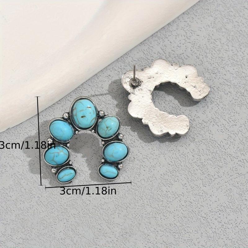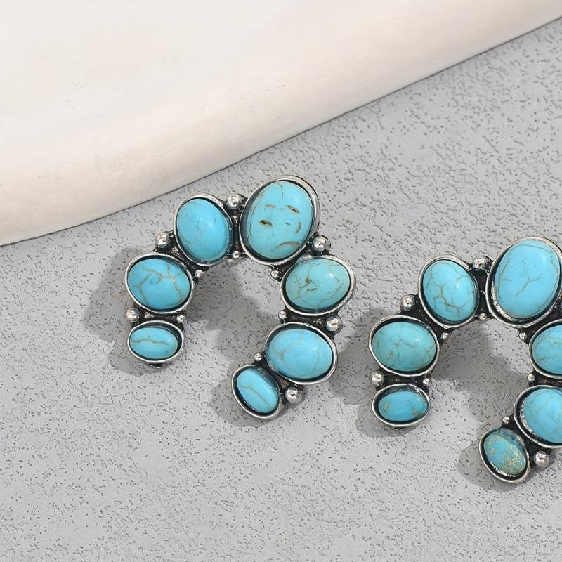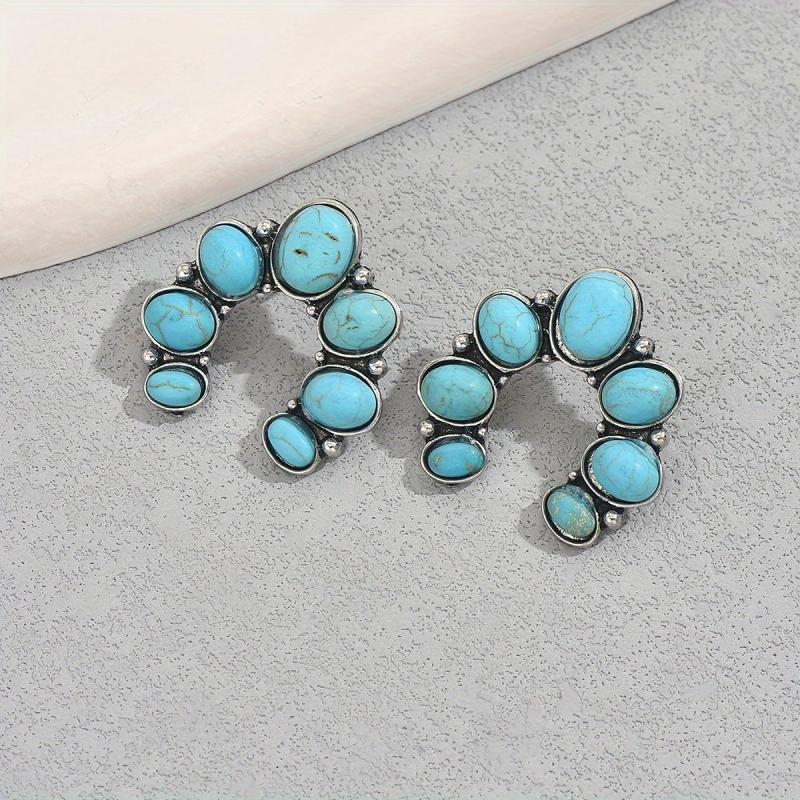 Add a touch of vintage charm to your outfit with these bohemian turquoise earrings. The U shaped design features a beautiful flower accent, making it a perfect accessory for casual or resort wear.