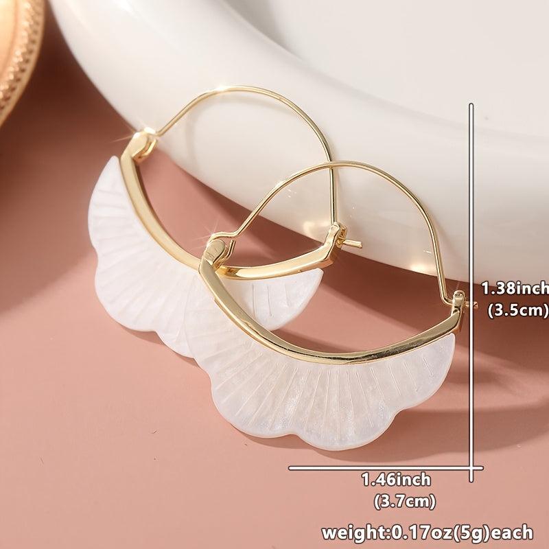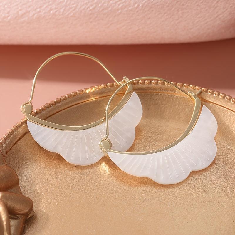 Elegant crescent moon & flower design hoop earrings with mother of pearl and golden tone bezel. Ideal for daily wear or special occasions like Christmas.