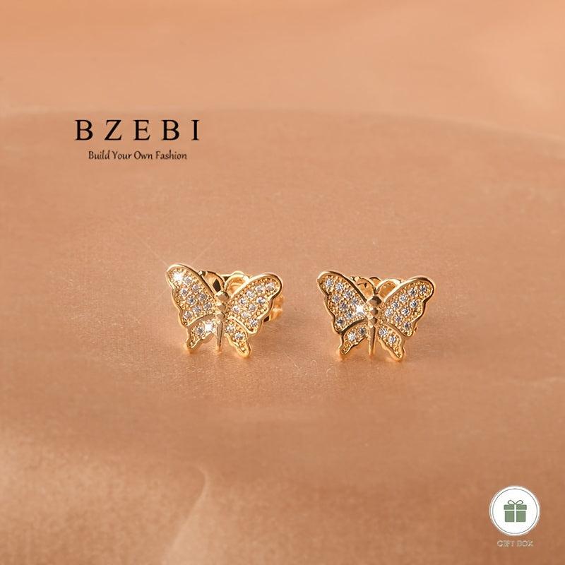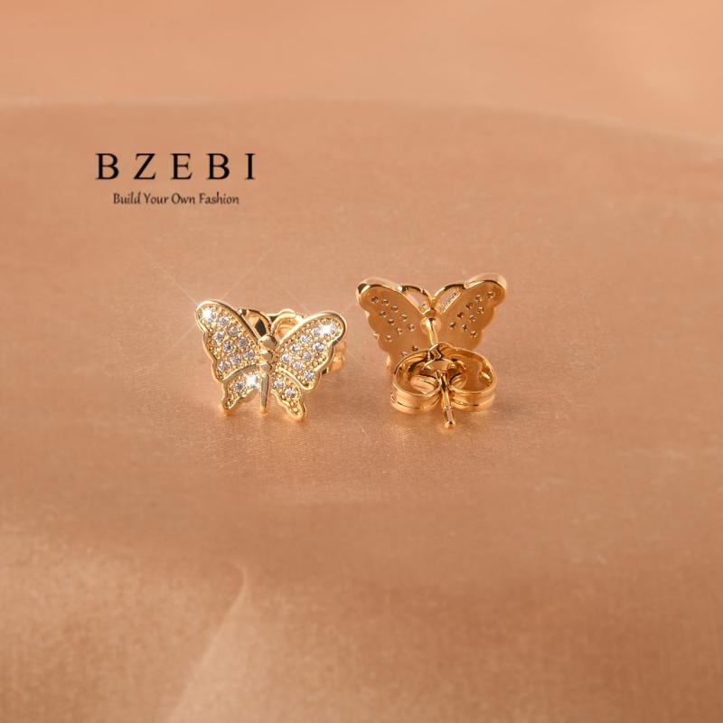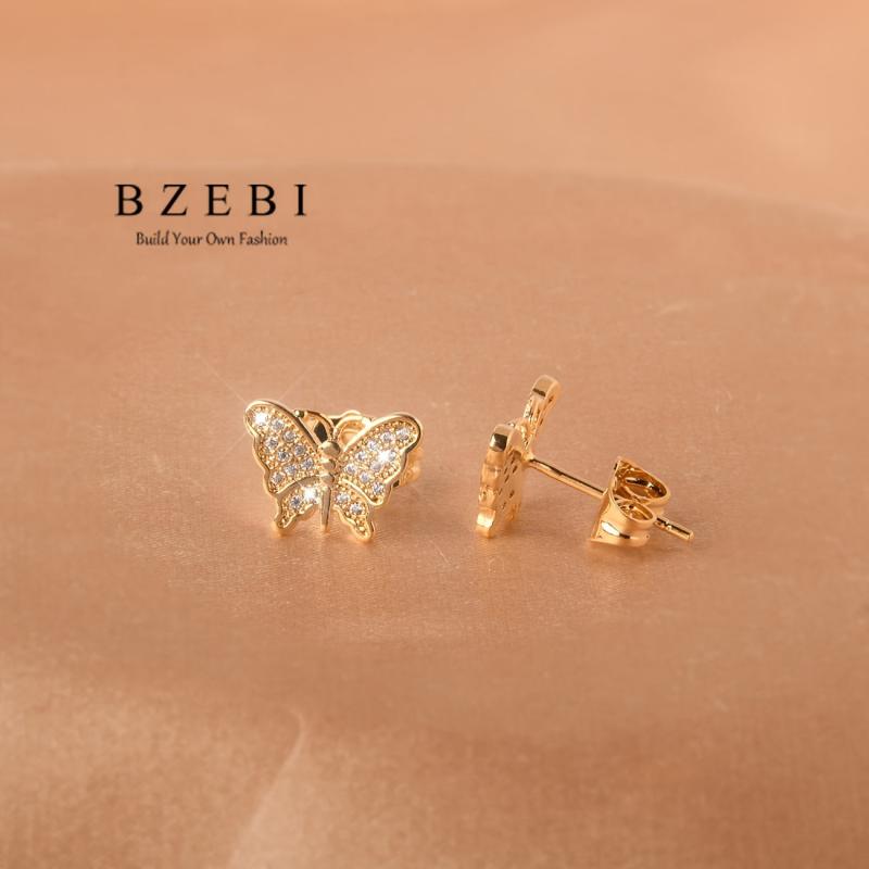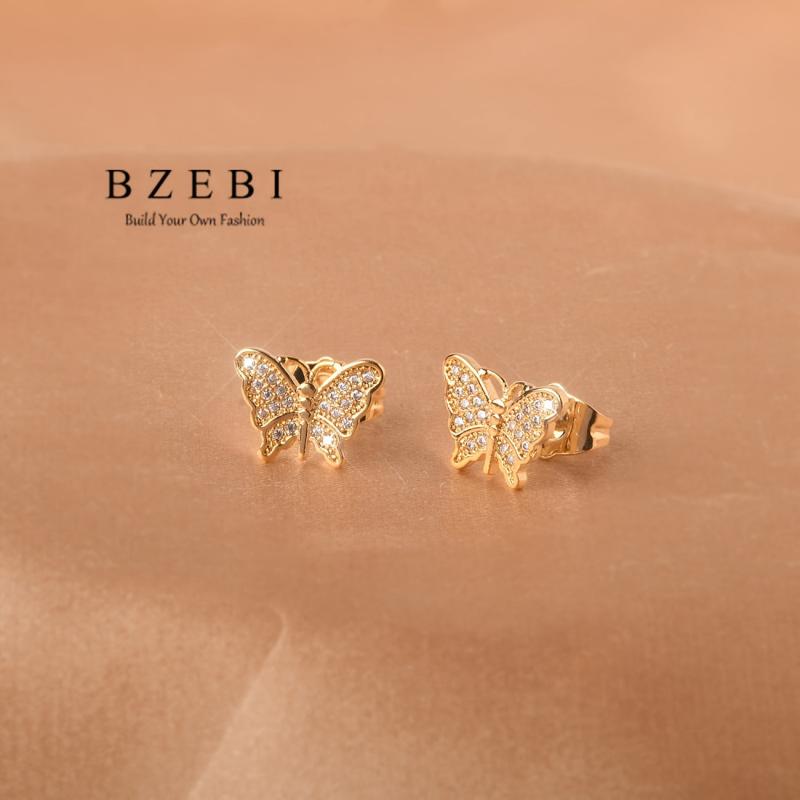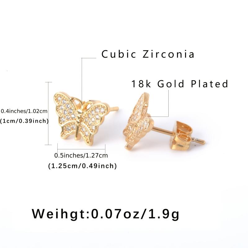 Add a touch of elegance with these vintage butterfly stud earrings. Crafted with 18K gold plating and sparkling cubic zirconia, these hypoallergenic earrings are perfect for daily wear.