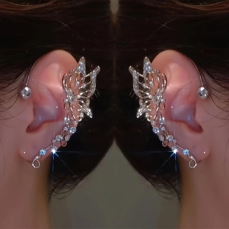 Get these stunning vintage butterfly wing ear cuffs made of hypoallergenic copper with synthetic zirconia. No piercing required, perfect for daily wear or as a gift.