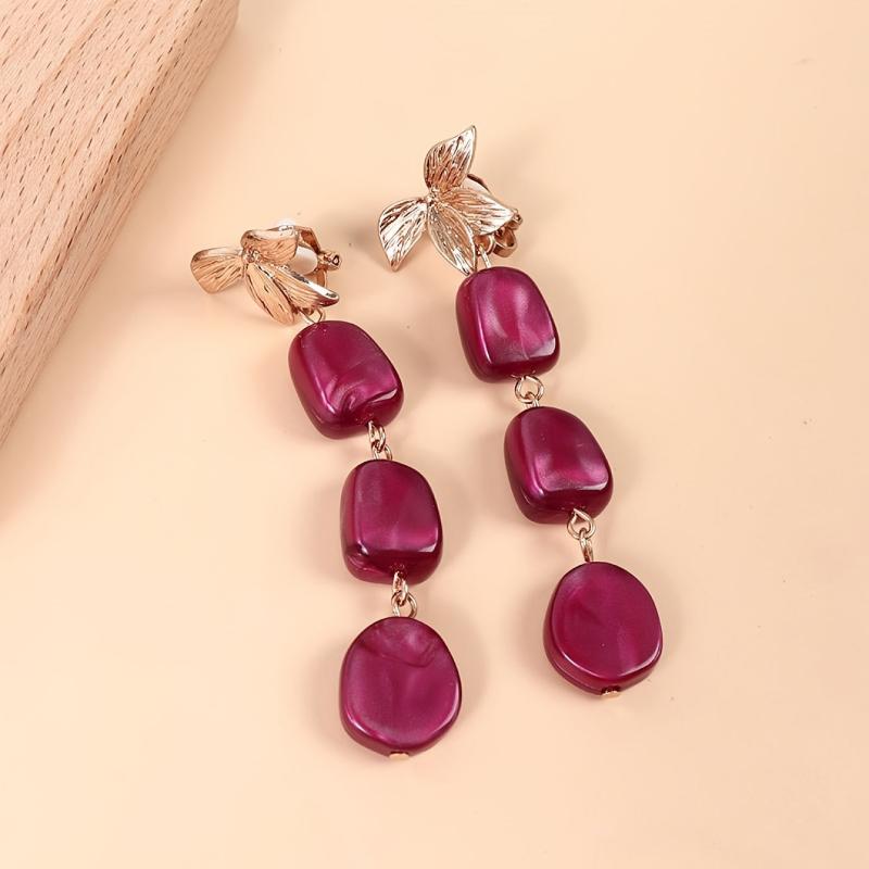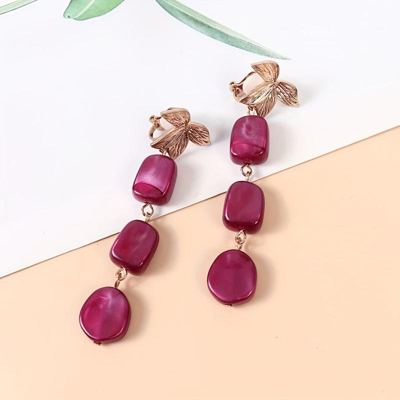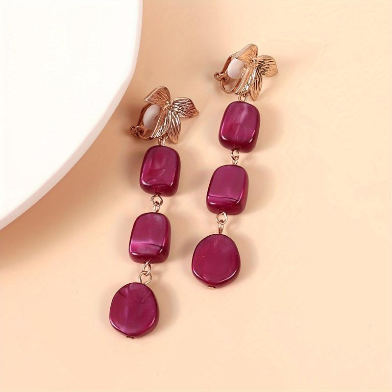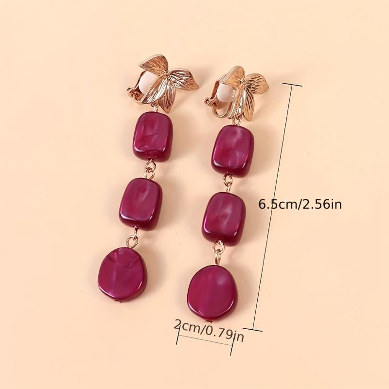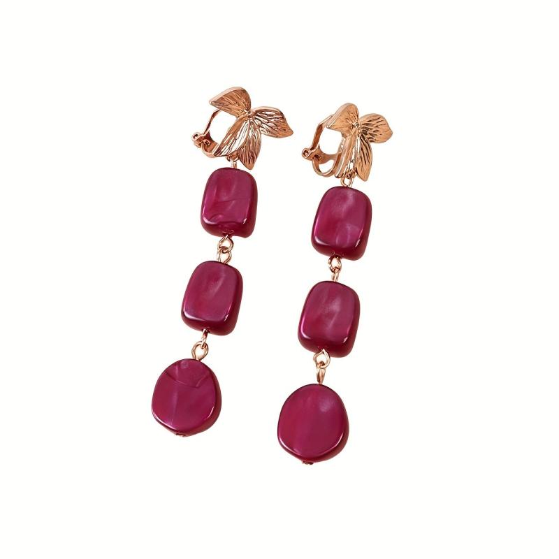 These vintage clip-on drop earrings are made of 14K plated zinc alloy with burgundy red dangle elements. Perfect for weddings, vacations, or as a gift for summer.