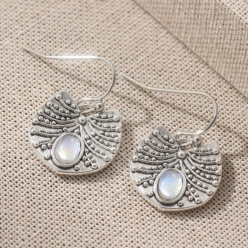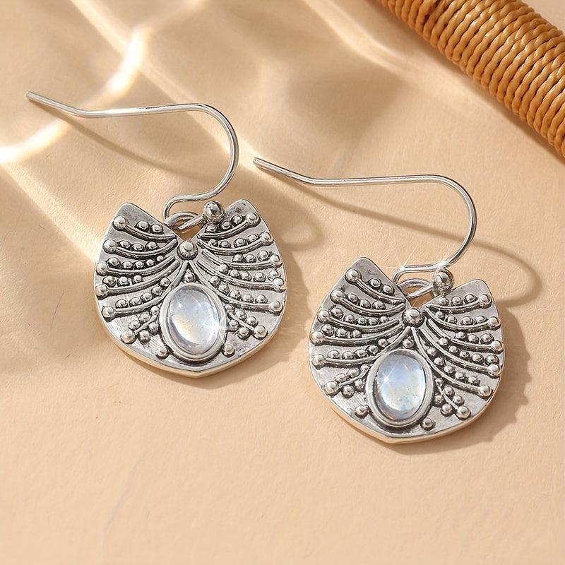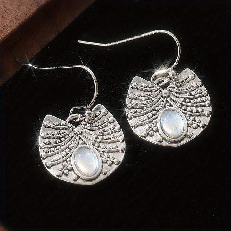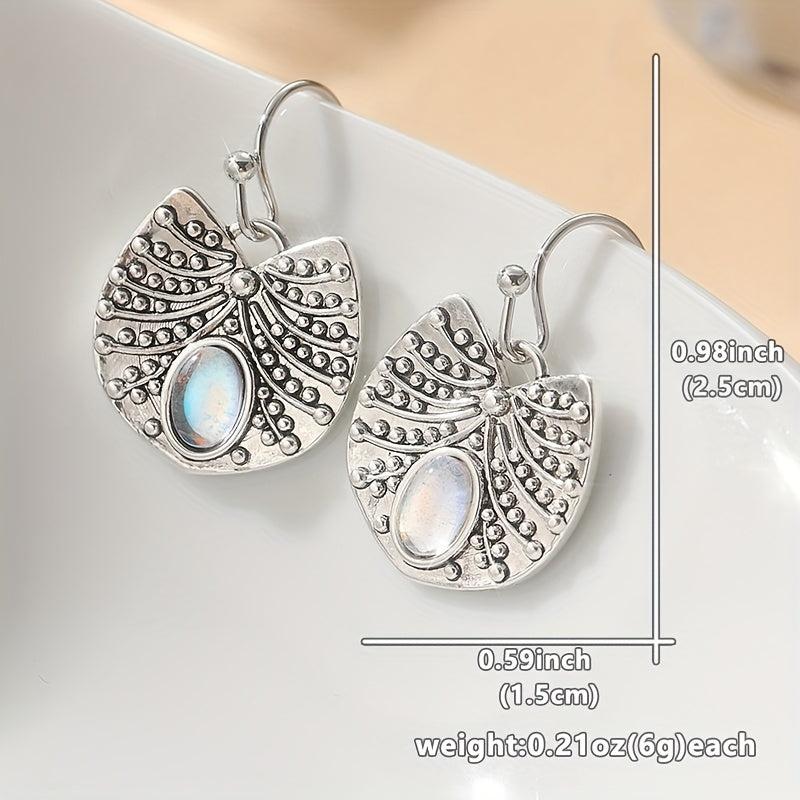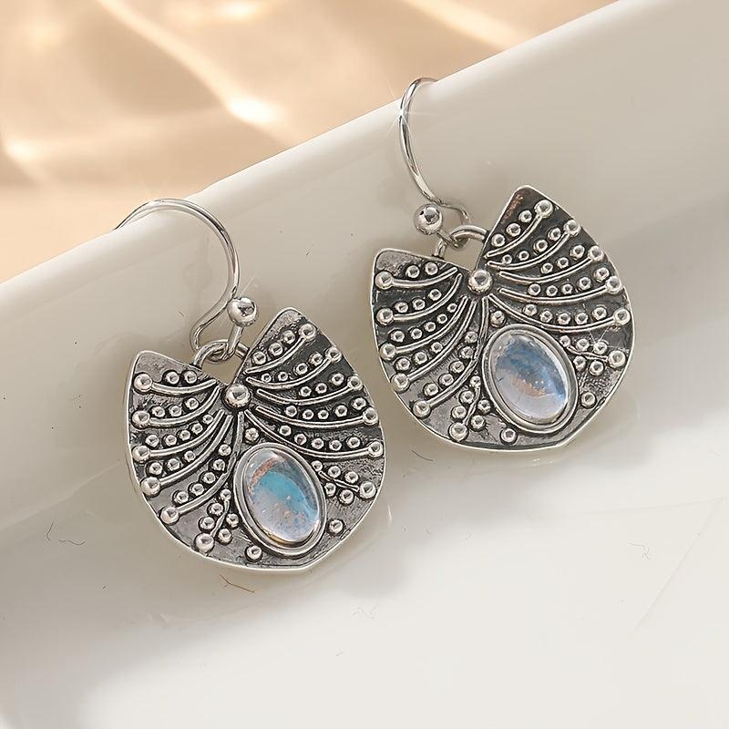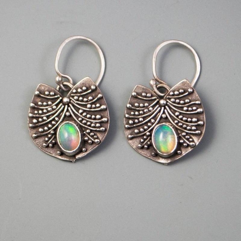 These stunning vintage bohemian earrings feature hand-carved leaf designs with iridescent bead accents on a copper base. The golden hues add a touch of elegance to any outfit.