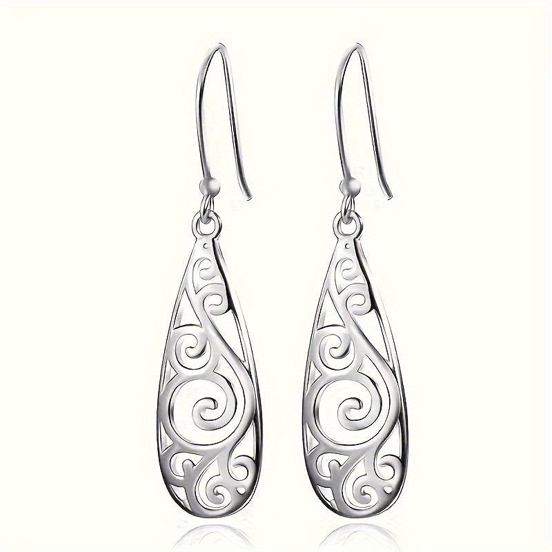 Beautiful vintage style filigree teardrop dangle earrings featuring metal hollow carved design. Perfect for any occasion!