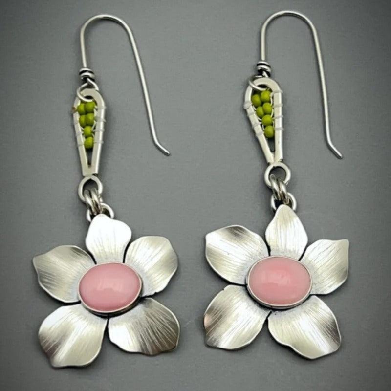 These vintage-inspired flower dangle earrings feature a unique conch botanical design crafted from copper and resin, making them the perfect accessory for women seeking a distinctive look.