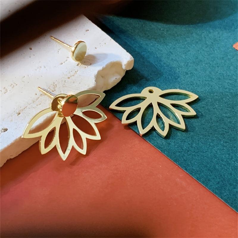 Add a touch of vintage charm to your look with these lotus back hook earrings. The golden tone and sparkling stones make them perfect for daily wear or special occasions.