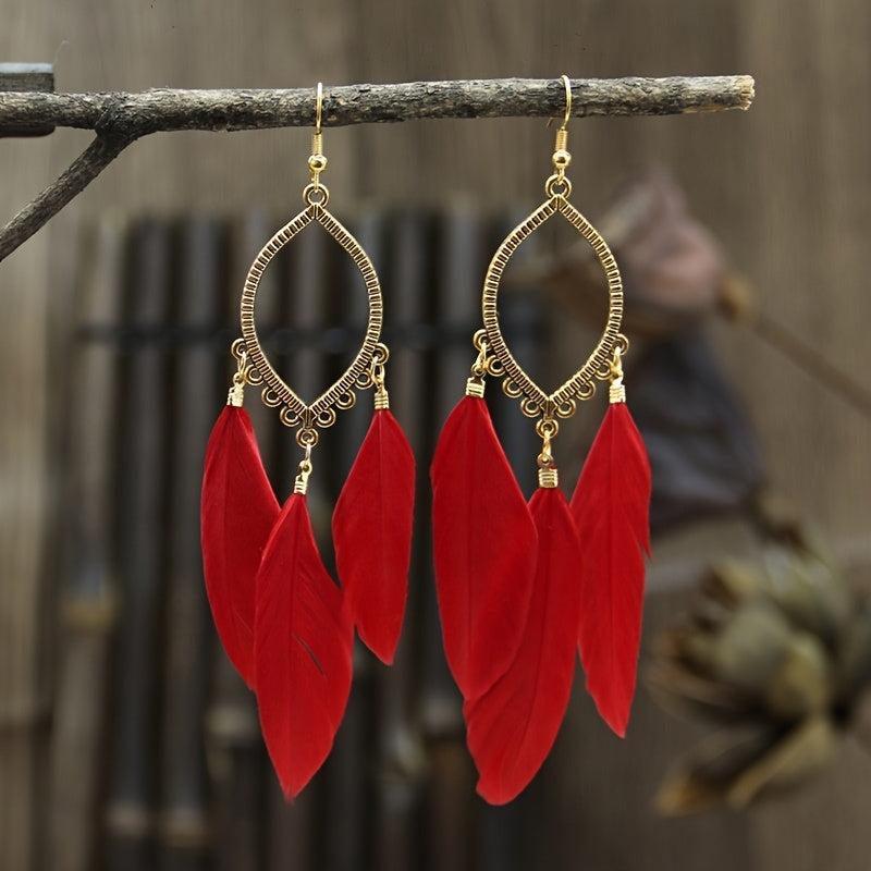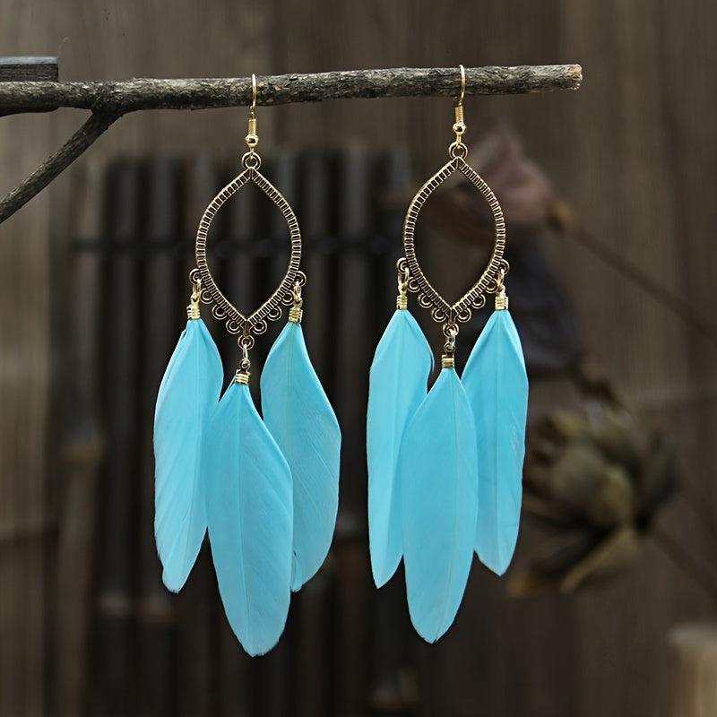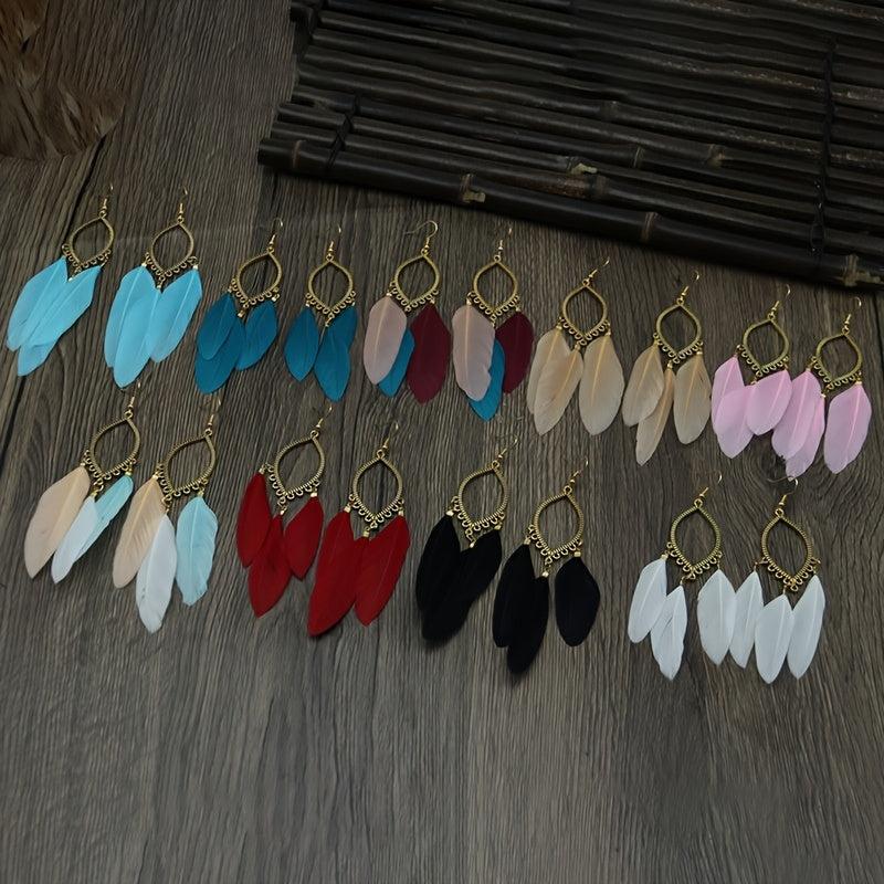 These vintage metal earrings feature a round hoop design with light and feathers, making them perfect for daily wear and parties. Feather earrings without