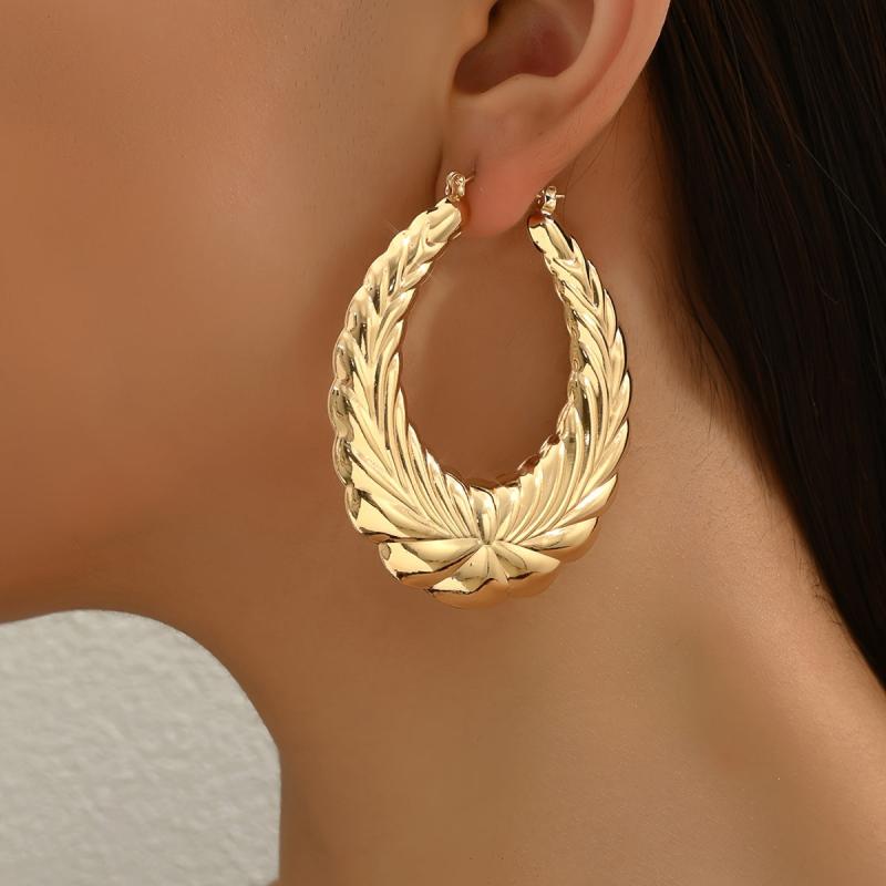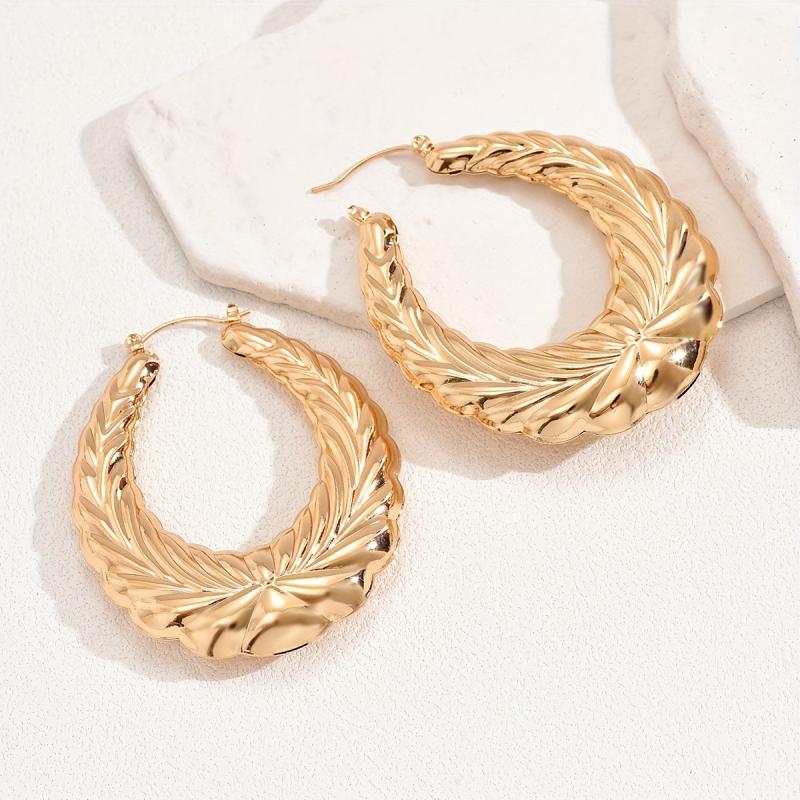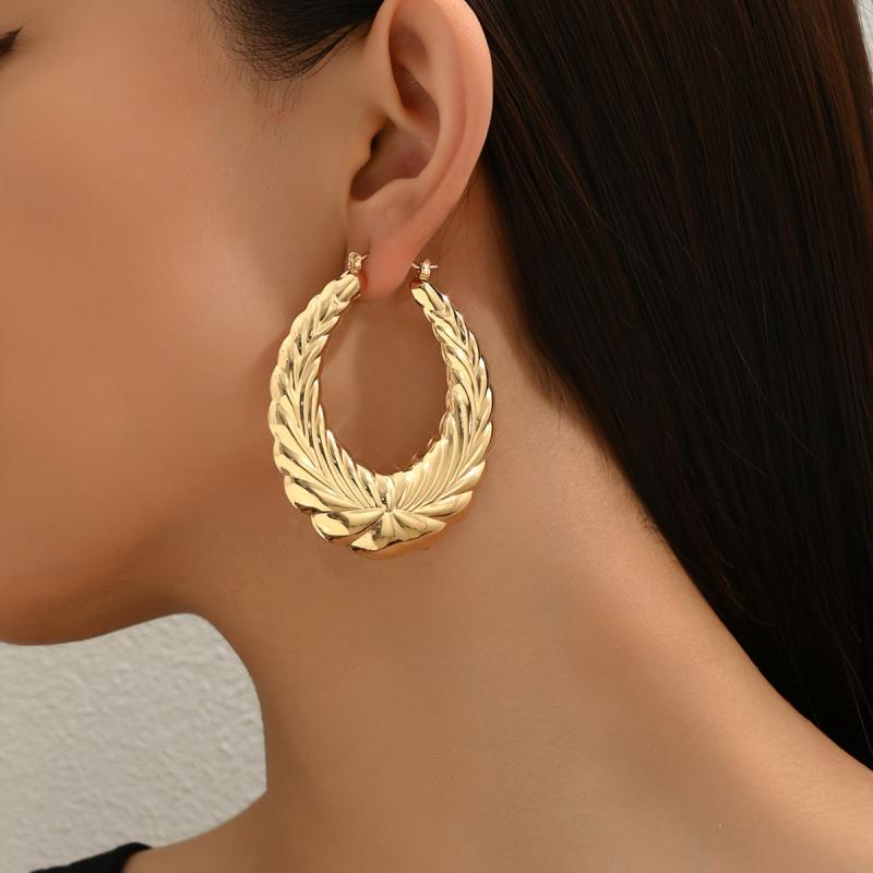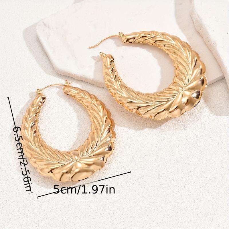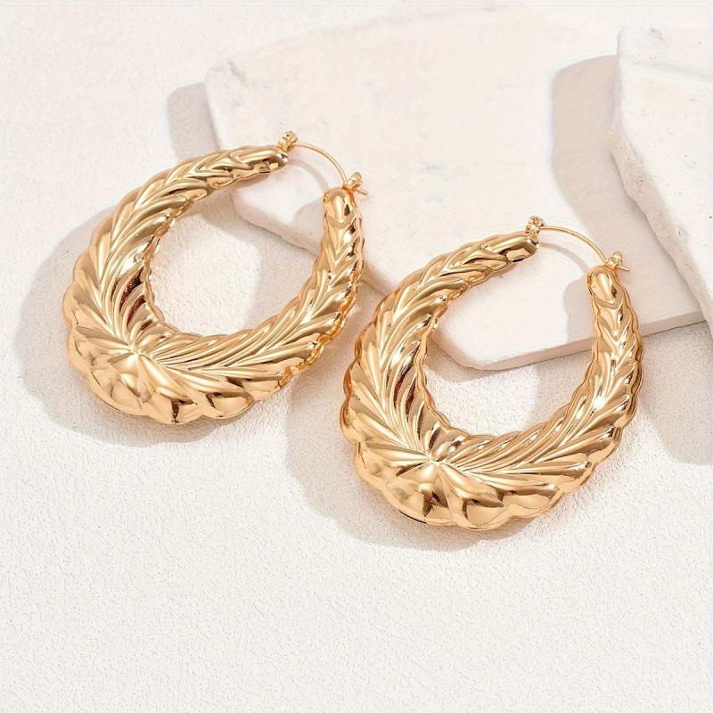 These vintage oval hoop earrings feature a stylish wheat sheaf pattern design. Made of iron, these earrings are perfect for daily wear and make a great gift for any occasion.