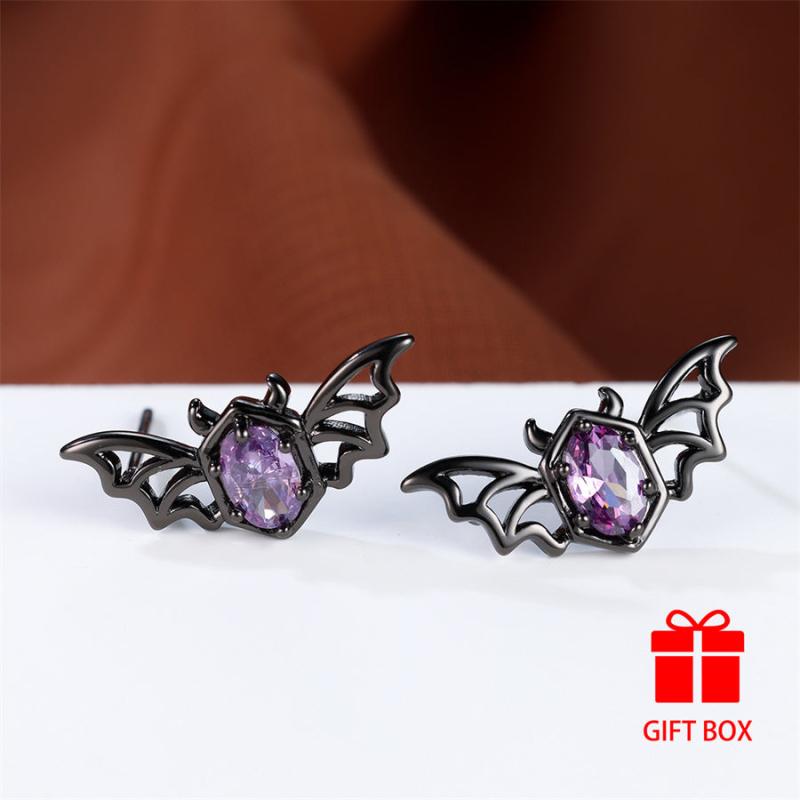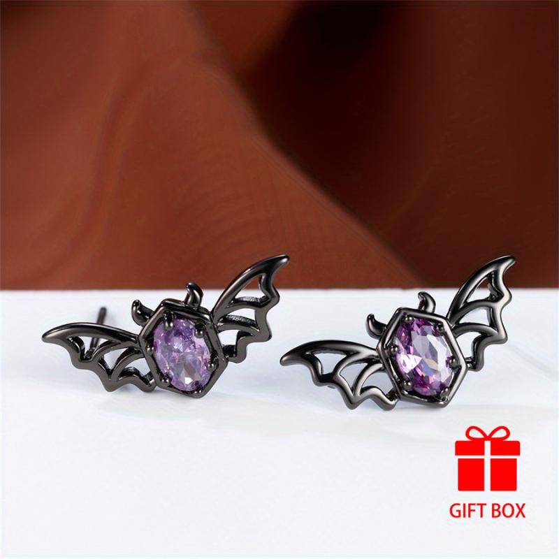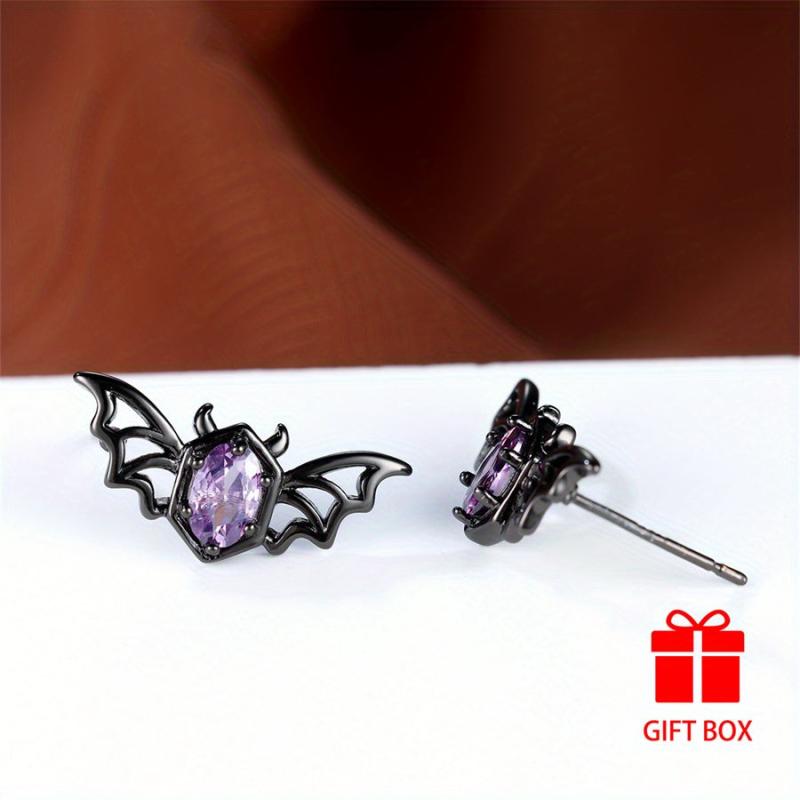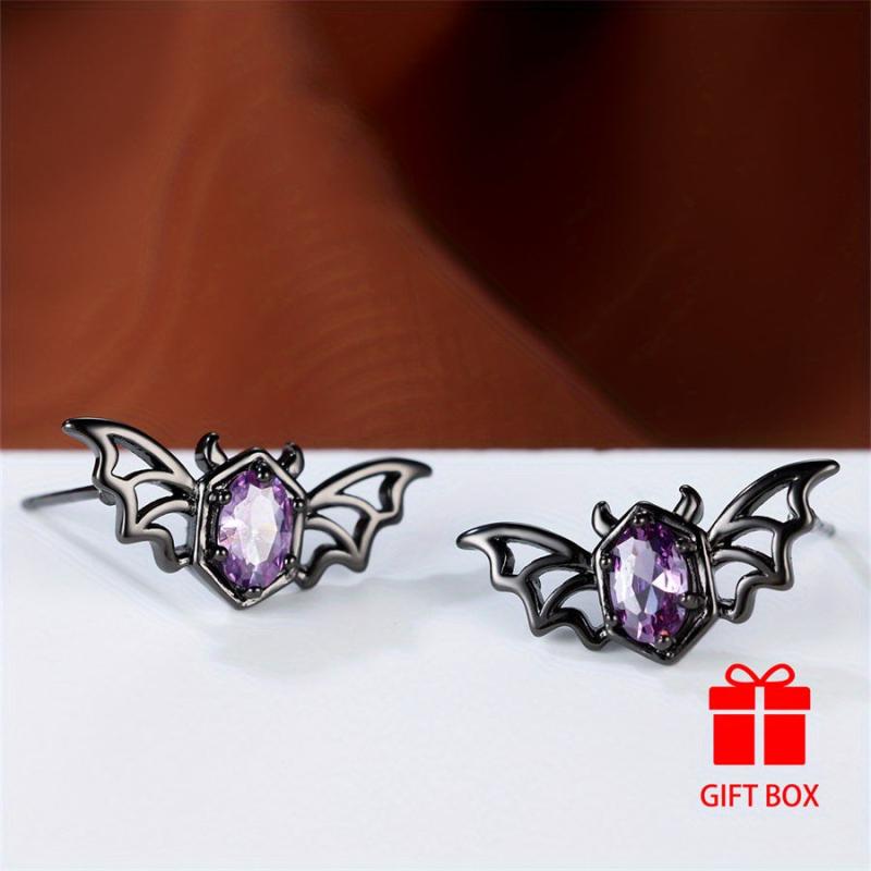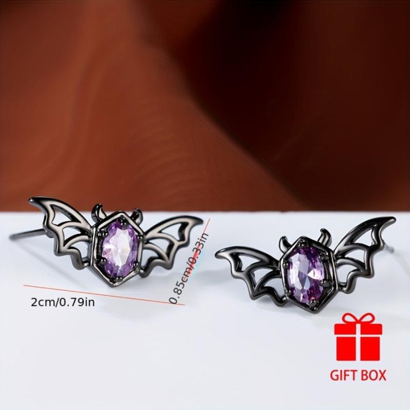 Add a touch of mystique with these oval purple zirconia bat stud earrings. Perfect for weddings, parties, holidays, or daily wear. These durable earrings will add a sparkling accent to any outfit.