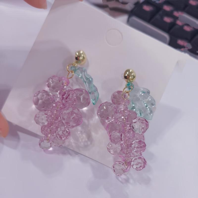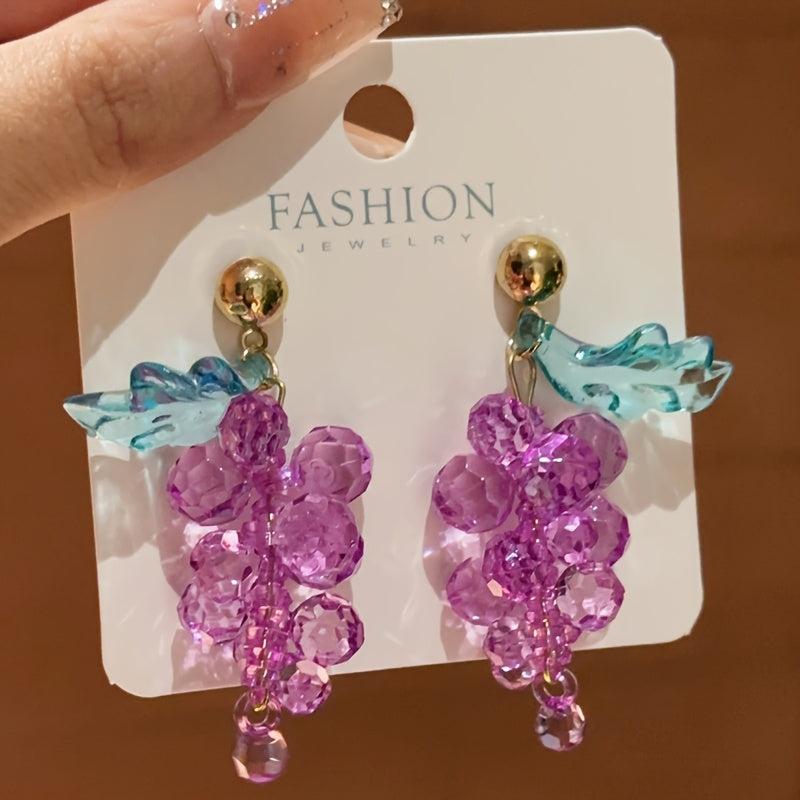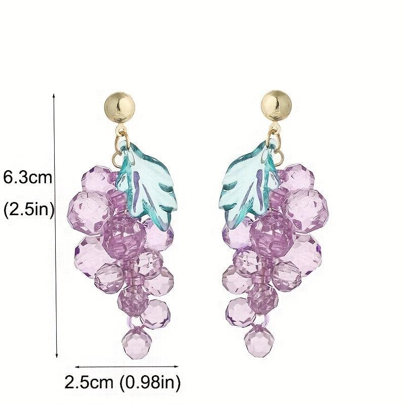 These elegant earrings feature glass bead clusters in a beautiful purple grape color with golden tone accents. They are lightweight and comfortable for daily wear or gift giving.