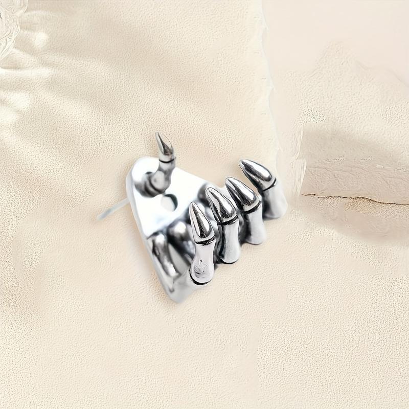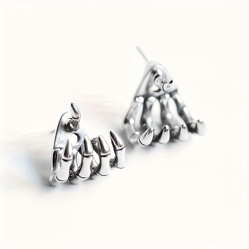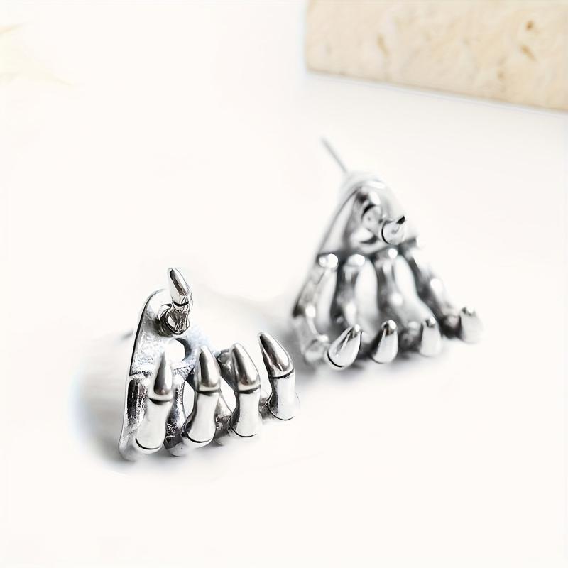 Add a touch of punk goth darkness to your Halloween look with these unique skull hand bone earrings.