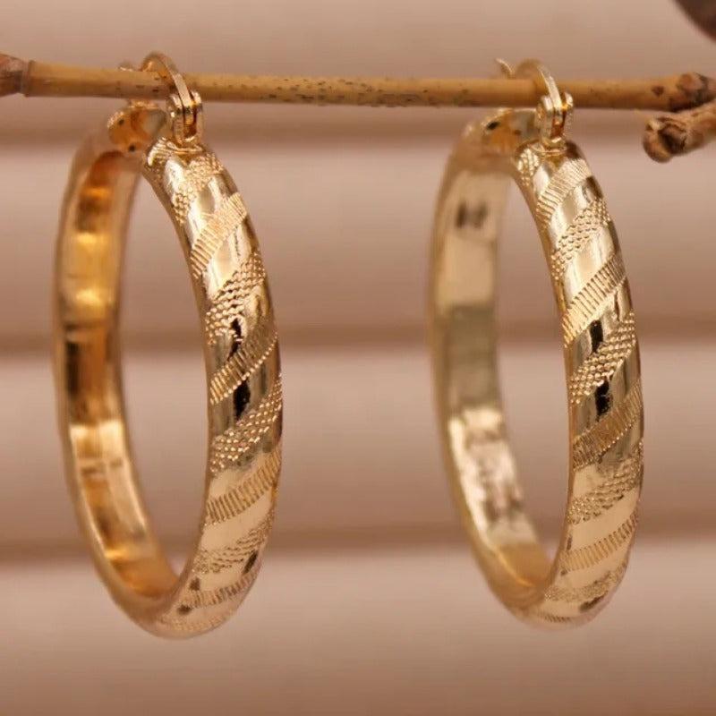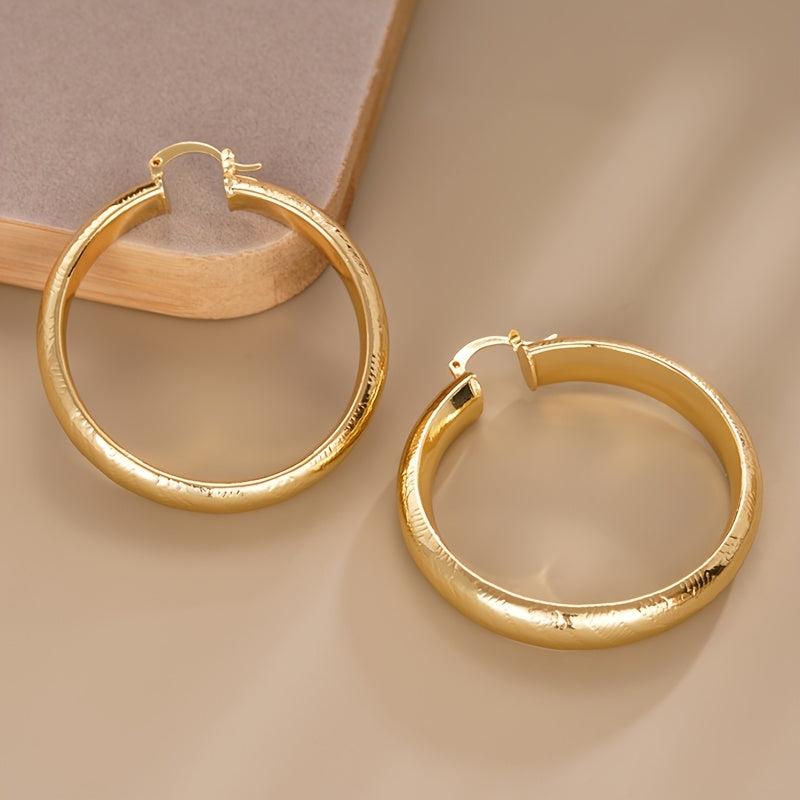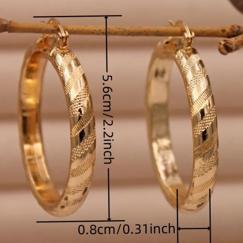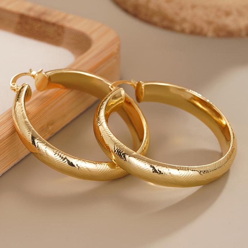 Enhance your look with these stunning hoop earrings featuring a unique intricate pattern. Perfect for casual wear, weddings, and parties.