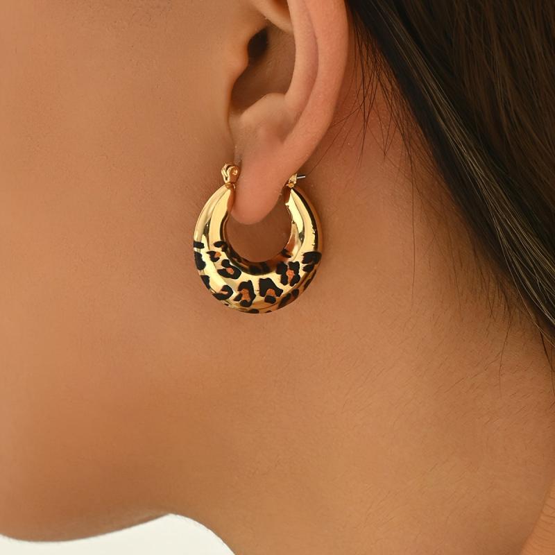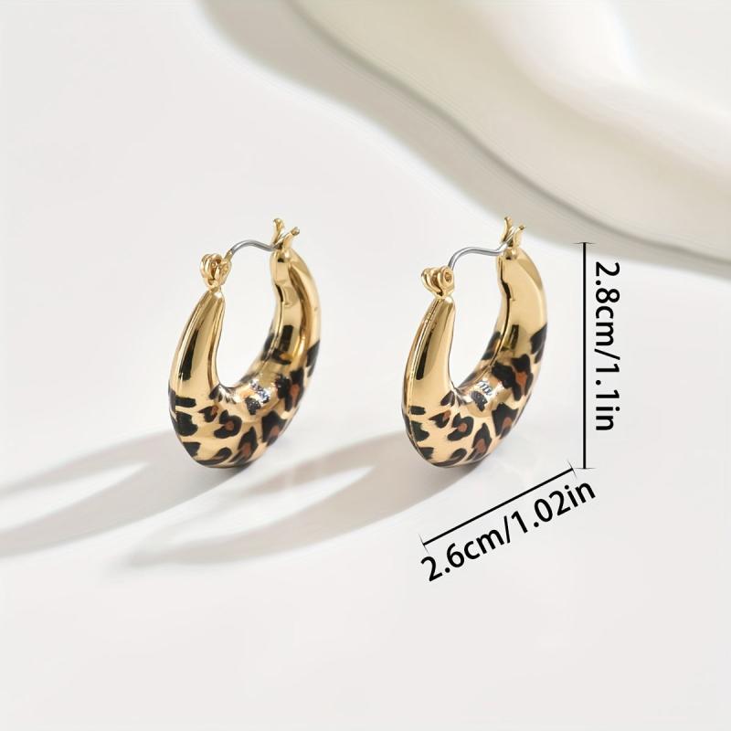 Add a touch of retro charm to your outfit with these versatile hoop earrings featuring a trendy leopard print design.