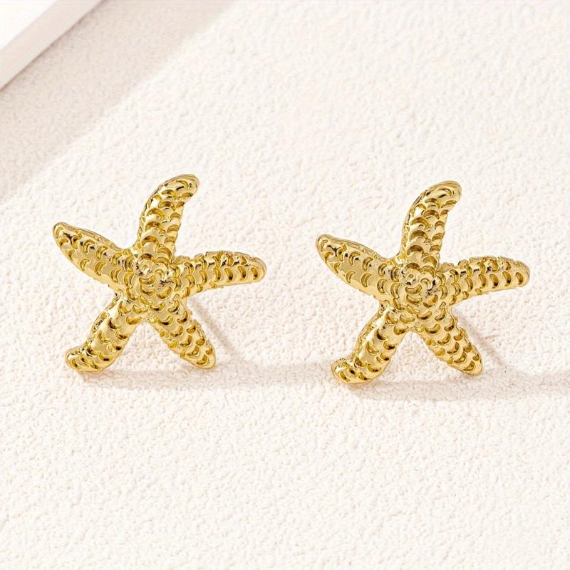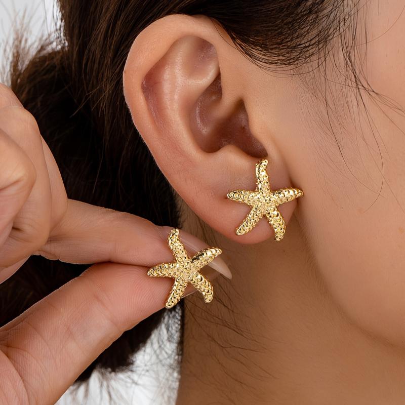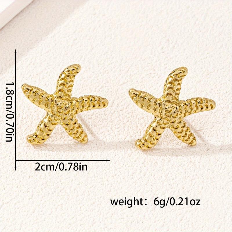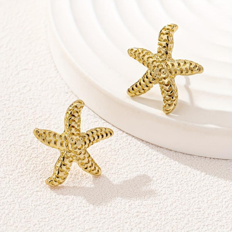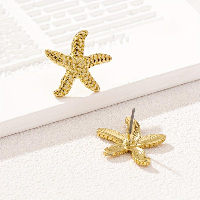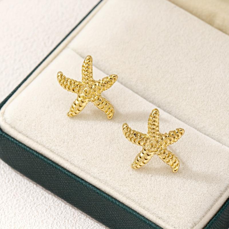 These starfish stud earrings are perfect for daily wear. Made of 14K golden plated zinc alloy, they are suitable for all seasons.