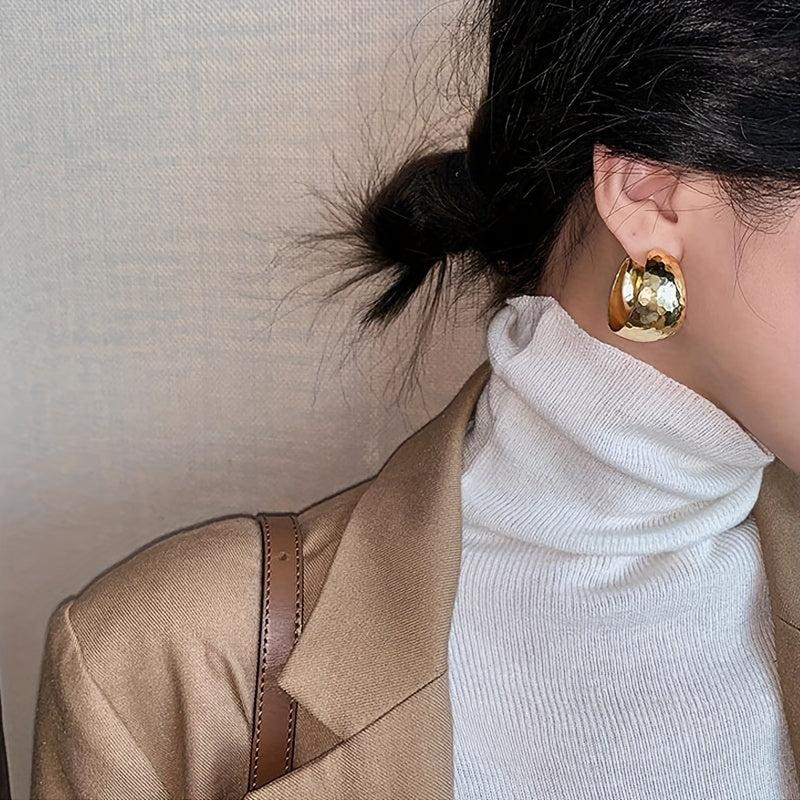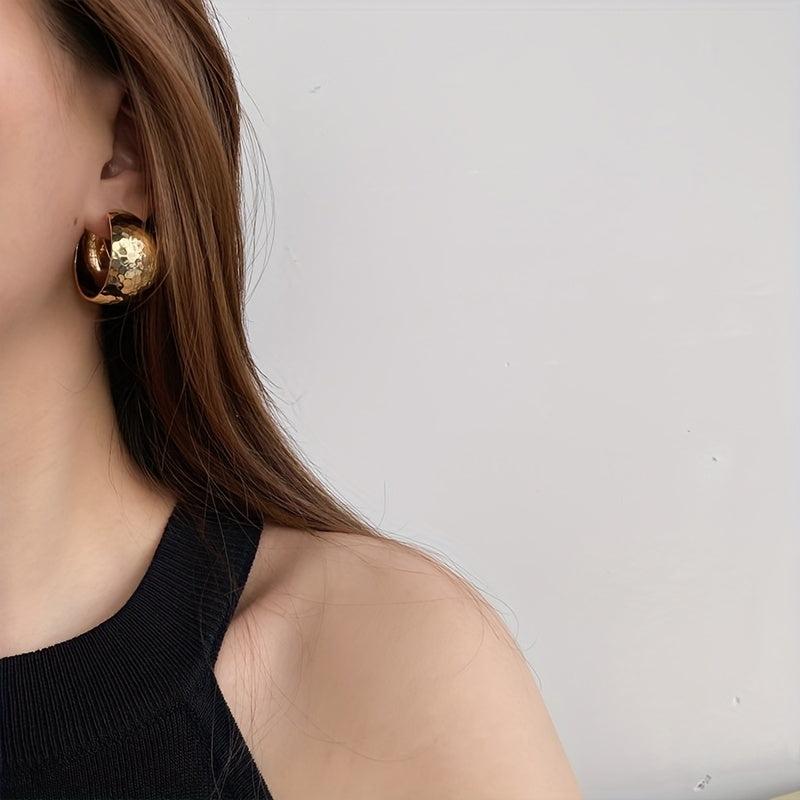 Add a touch of retro charm to your outfit with these wide face exaggerated C-shaped hoop earrings. Made from alloy with 18K plating, these earrings are perfect for daily wear.