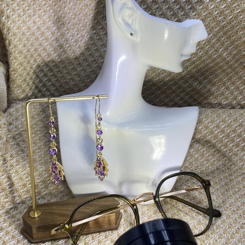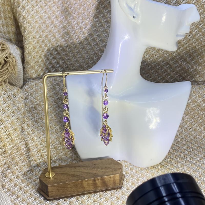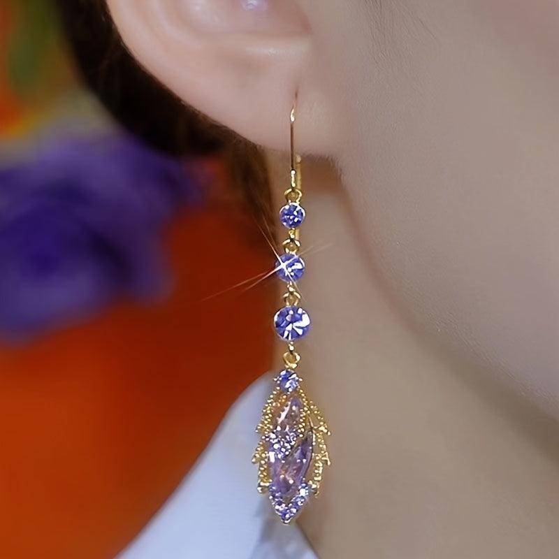 Elegant light alloy dangle earrings perfect for parties and formal events. Features purple rhinestone leaves and clear gemstones for a glamorous touch.