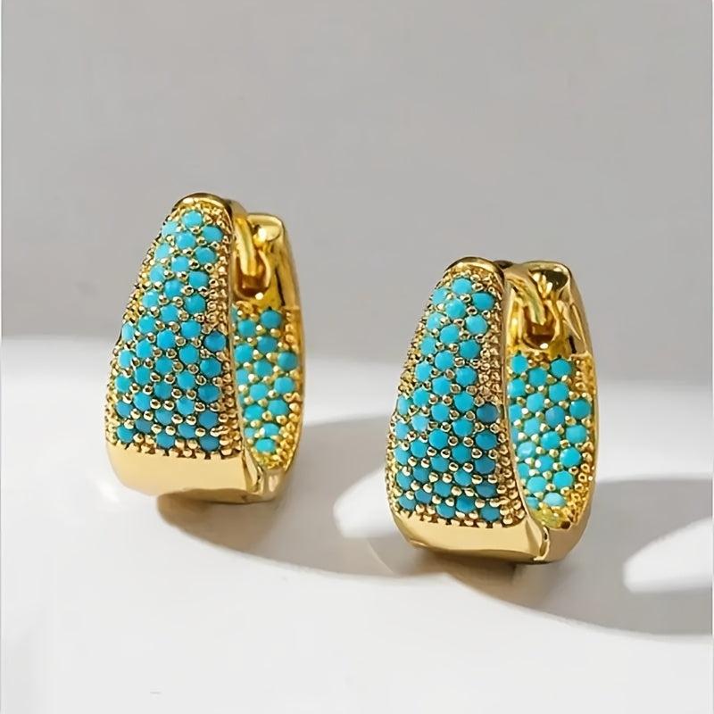 Add a touch of elegance to your look with these vintage turquoise hoop earrings. The thick and heavy design features sparkling crystals and golden tone KC plating, making them perfect for weddings and special occasions.