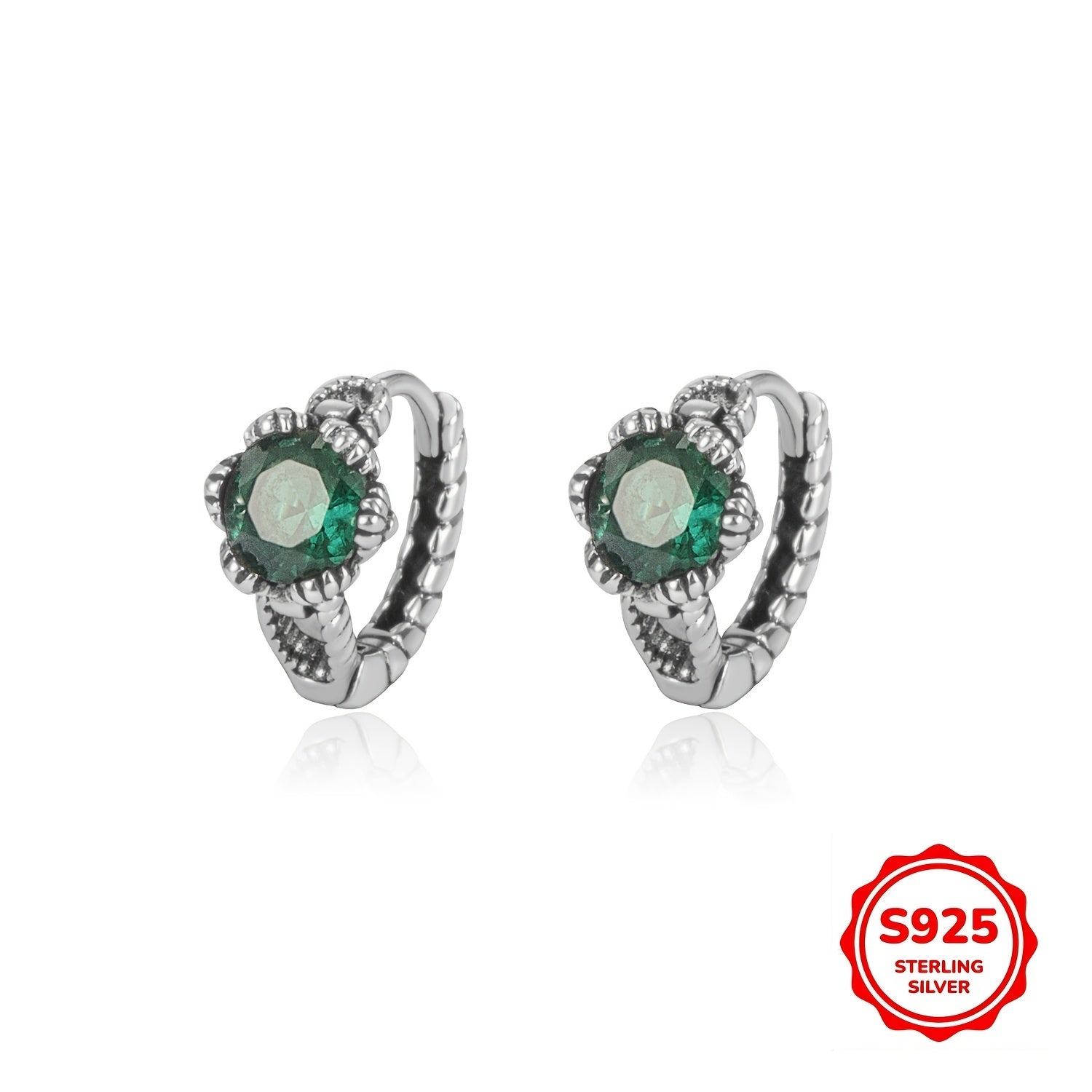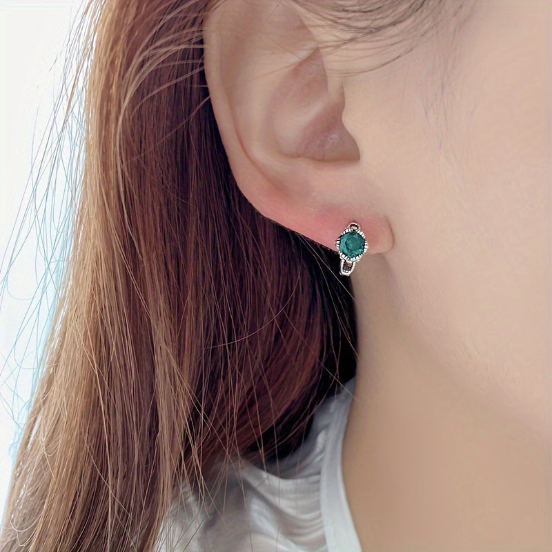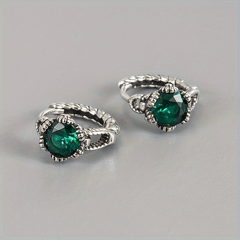 Elegant vintage earrings with green gemstones in pure S925 silver. Versatile and stylish design suitable for INS silvery.