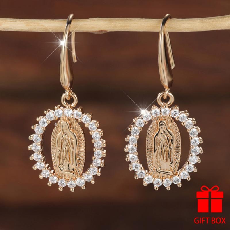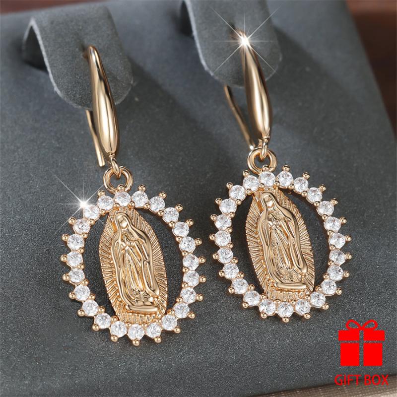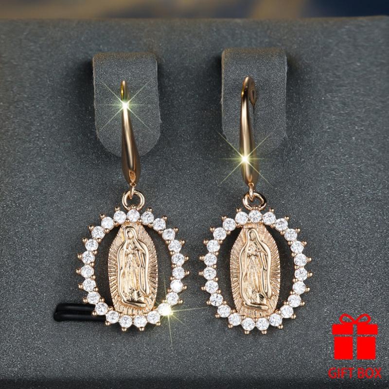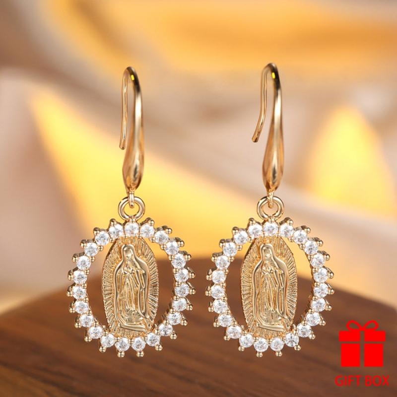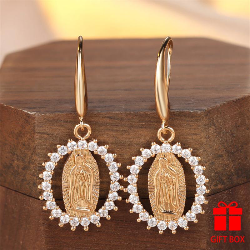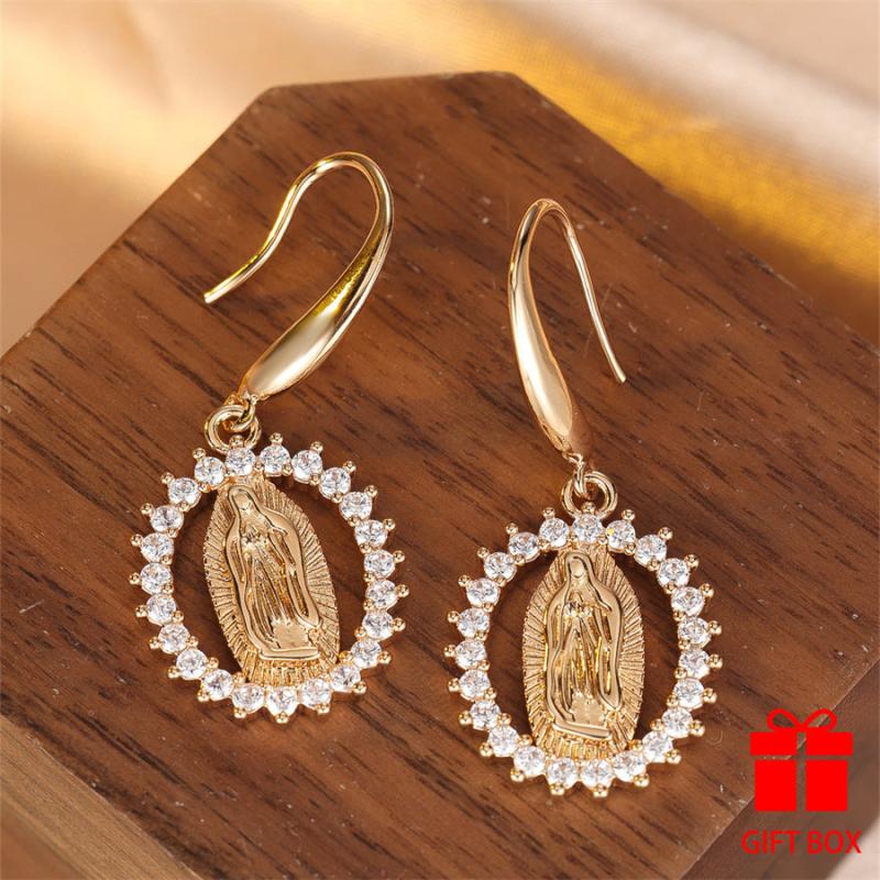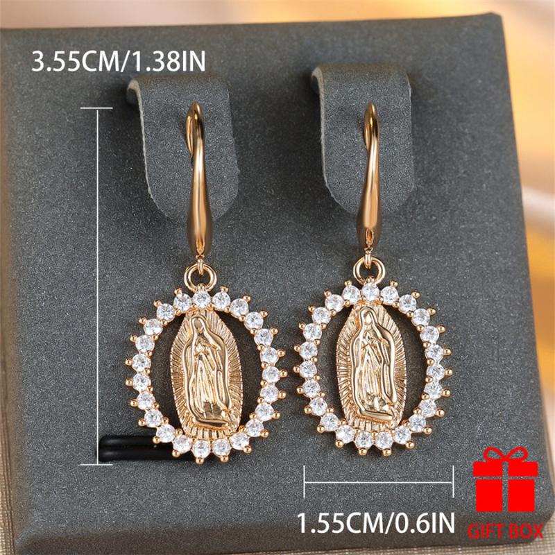Add a touch of elegance to your outfit with these unique Virgin Mary statue earrings featuring synthetic zirconia. Perfect for parties, holidays, and daily wear.