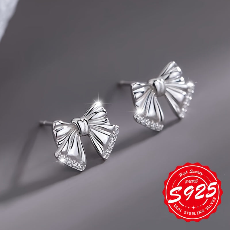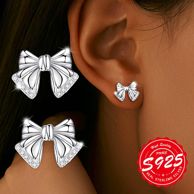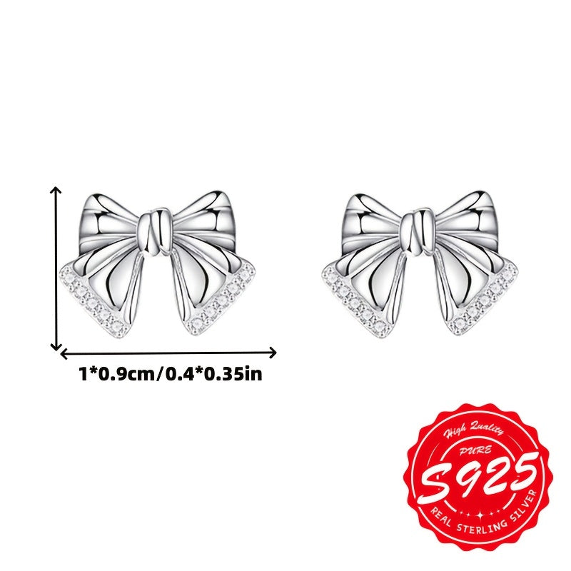These bow earrings are crafted from S925 pure silver, featuring a playful design that is suitable for daily wear and multiple occasions. They are low allergy and weigh 2.53g.