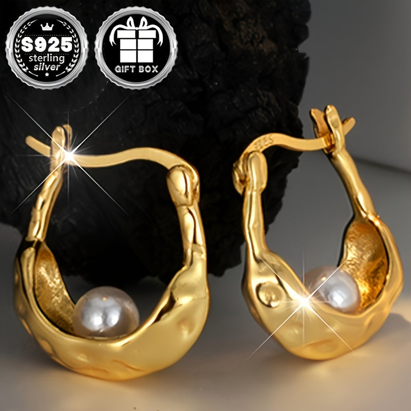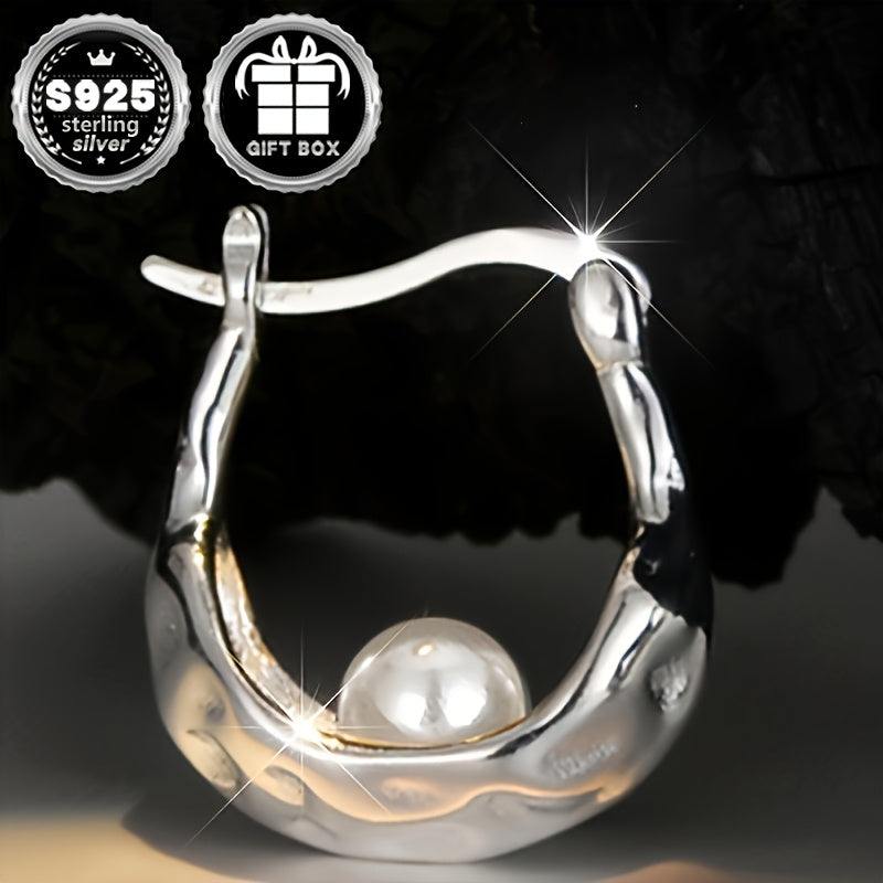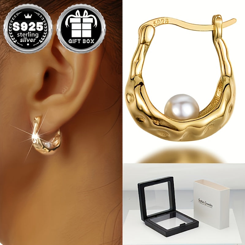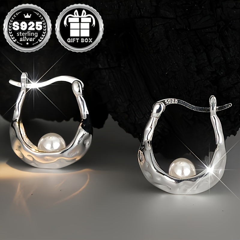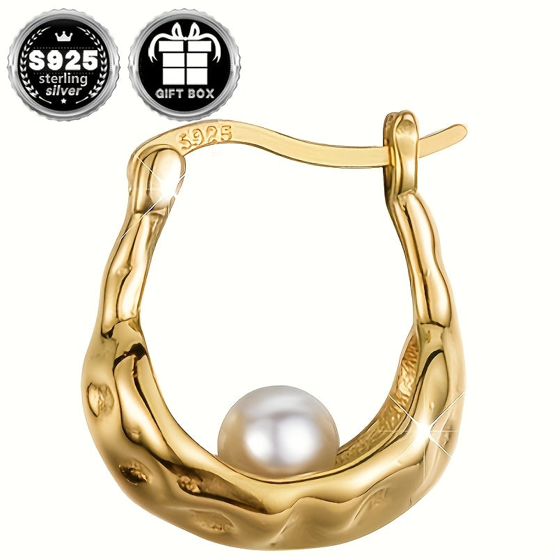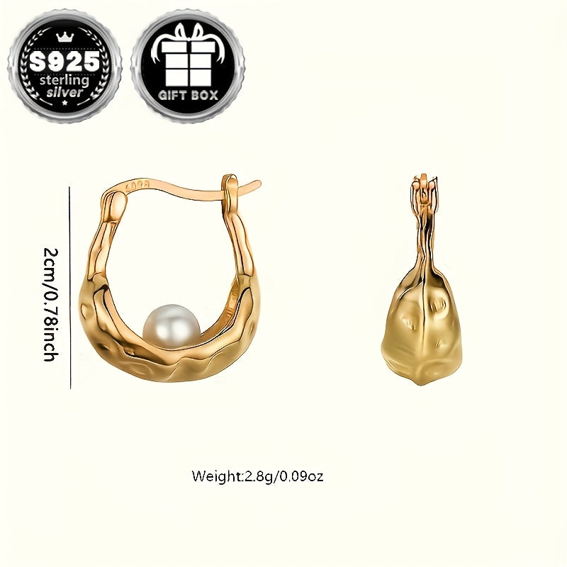 Elevate your style with these chic circular earrings featuring an irregular textured faux pearl in high-quality 925 silver. Weighing a total of 2.8 grams, these earrings are perfect for adding a touch of elegance to any outfit.