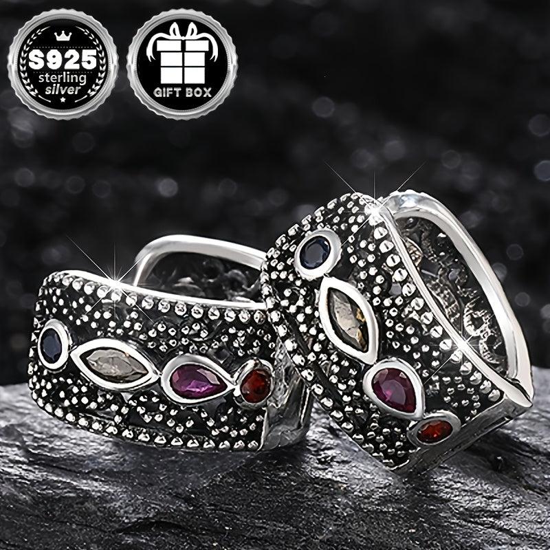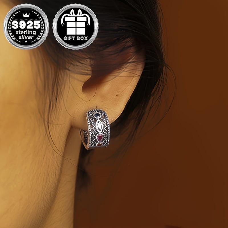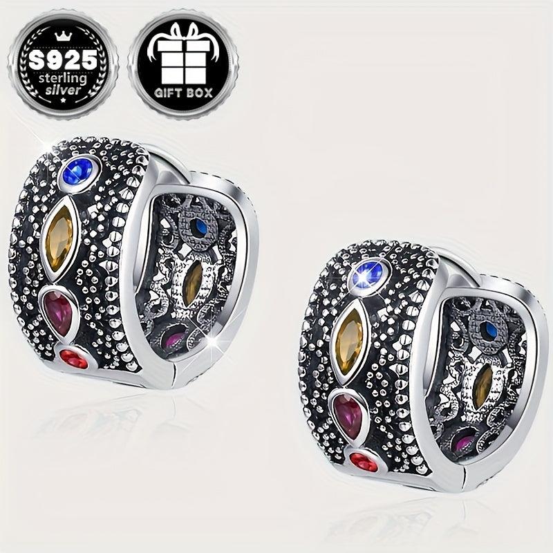 Add a touch of elegance to your look with these classic retro geometric earrings. Crafted with 925 silver and inlaid with synthetic zirconia, these earrings are perfect for daily wear or special occasions. Random packaging makes it a great gift for yourself or a loved one.