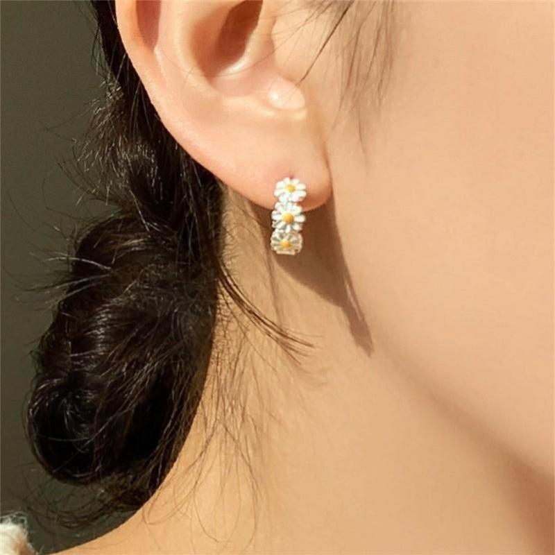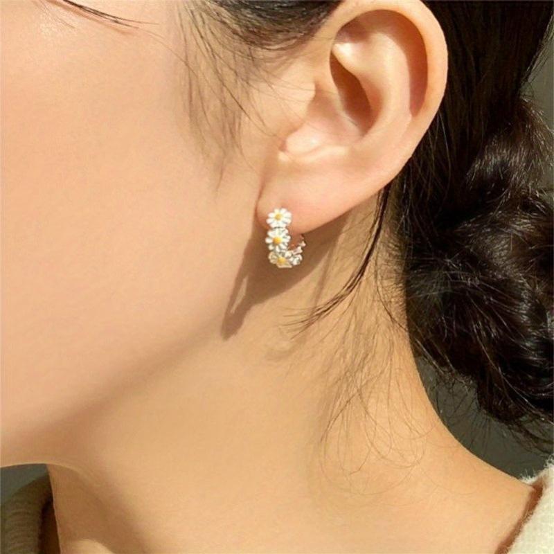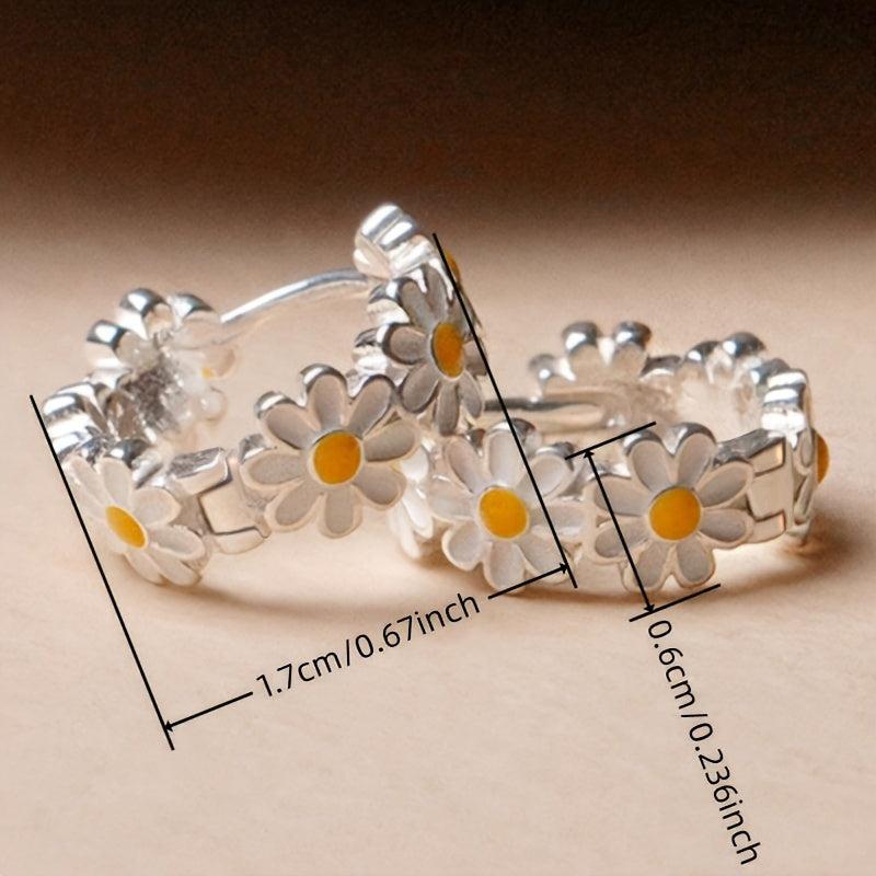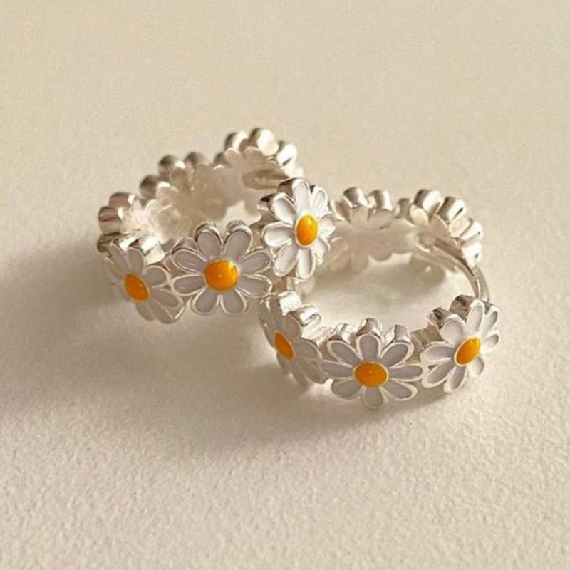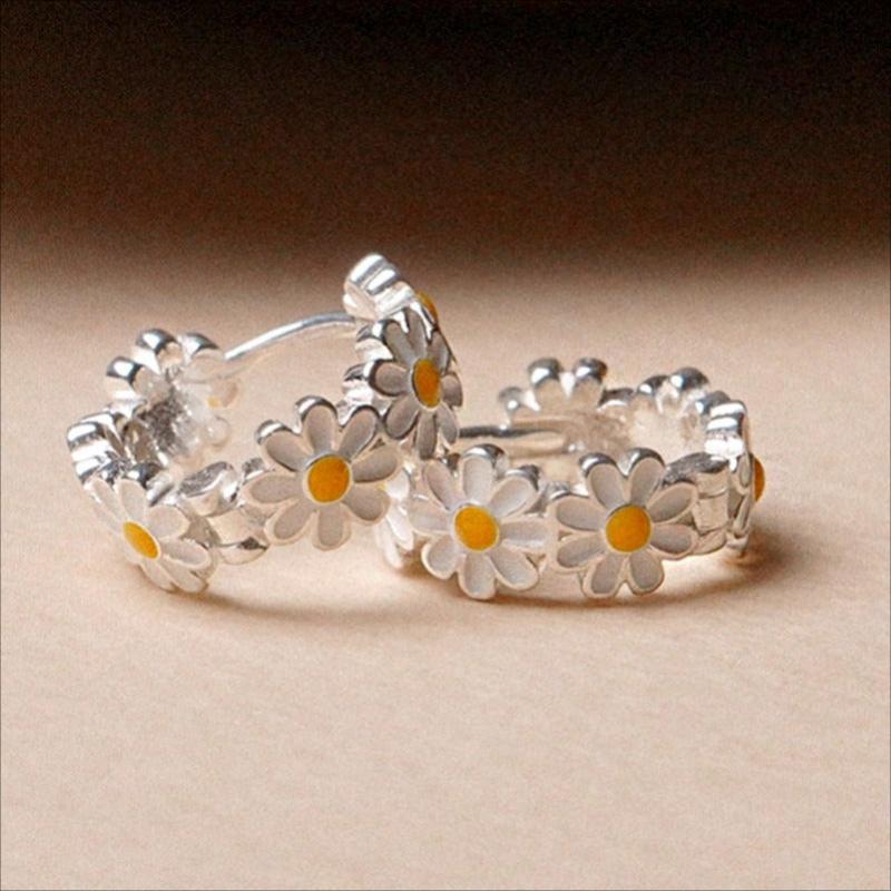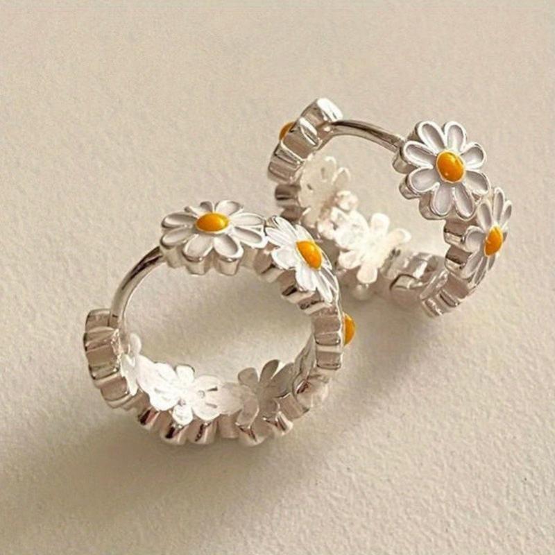 Complete your look with this elegant set of small daisy enamel flower ring earrings. Perfect for ladies' banquet party accessorizing.
