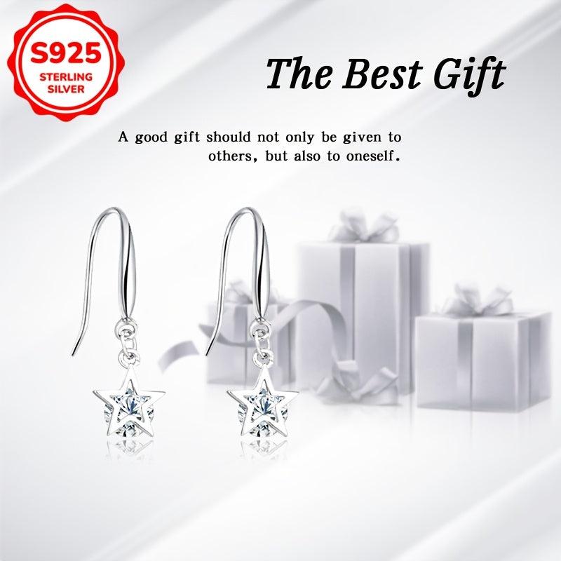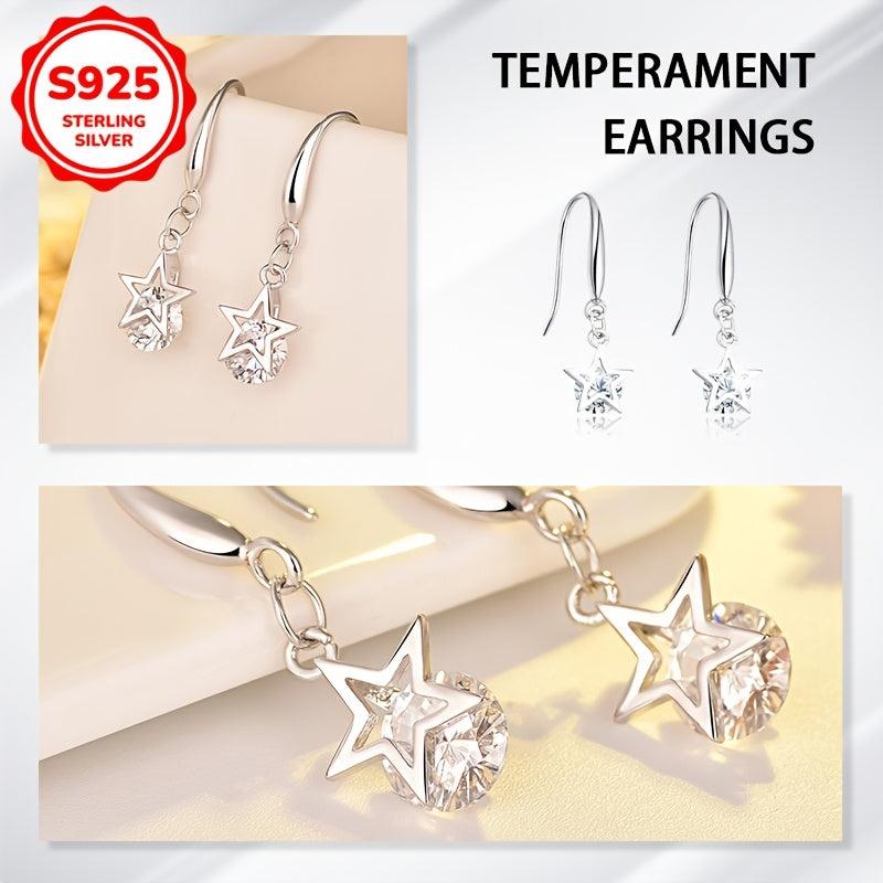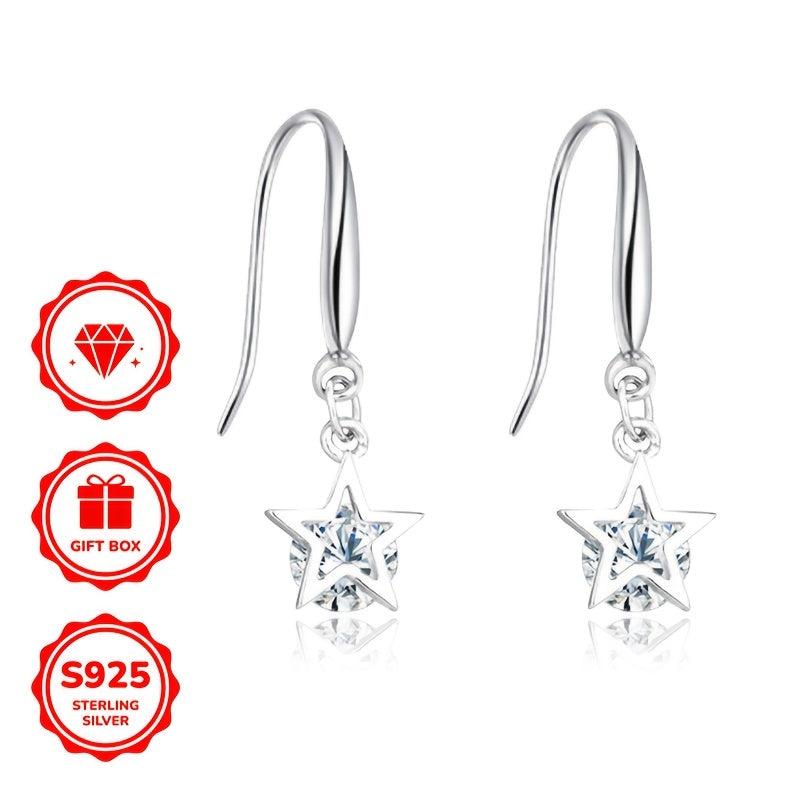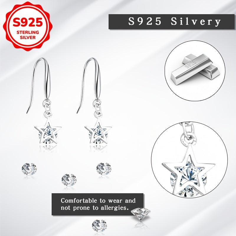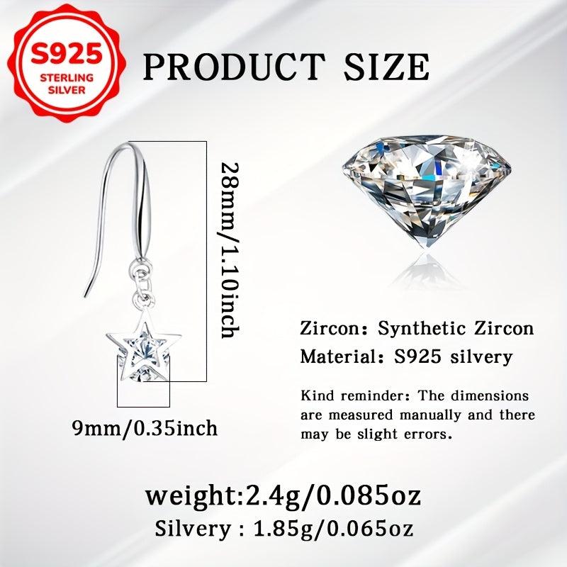 Pair of women's dangle earrings featuring zirconia star design. Made of 925 silver, weighing 1.85g. Perfect for daily wear or party occasions, an ideal gift for ladies.