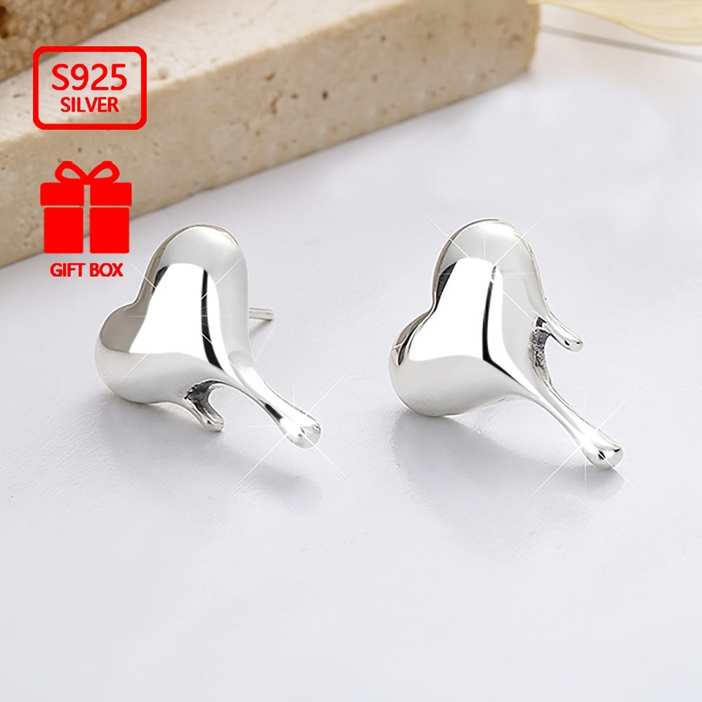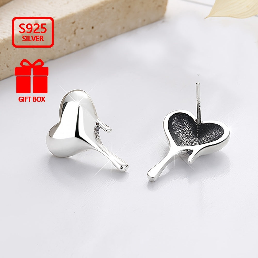 Elegant set of two pure s925 silver earrings featuring an arrow piercing a heart design. Perfect for a stylish look.