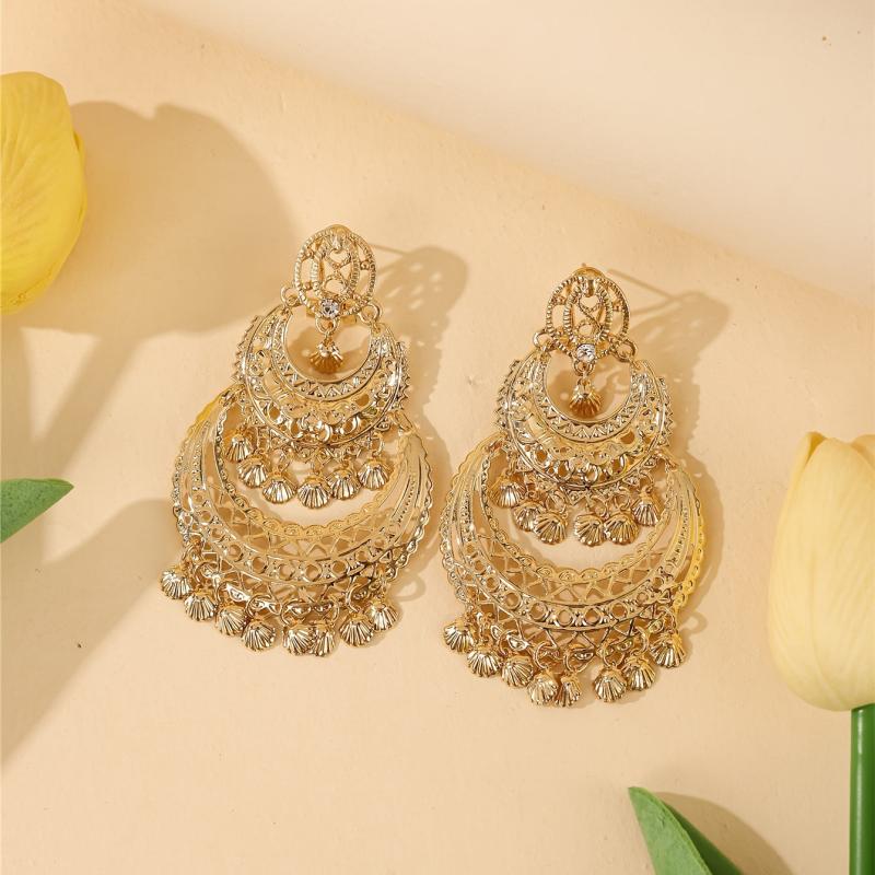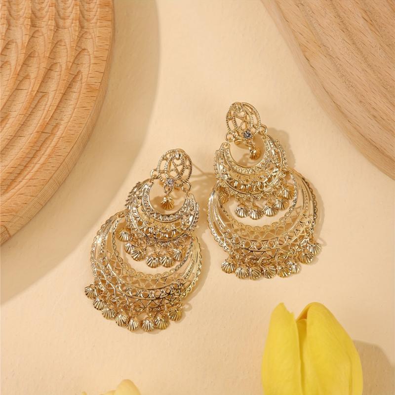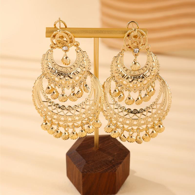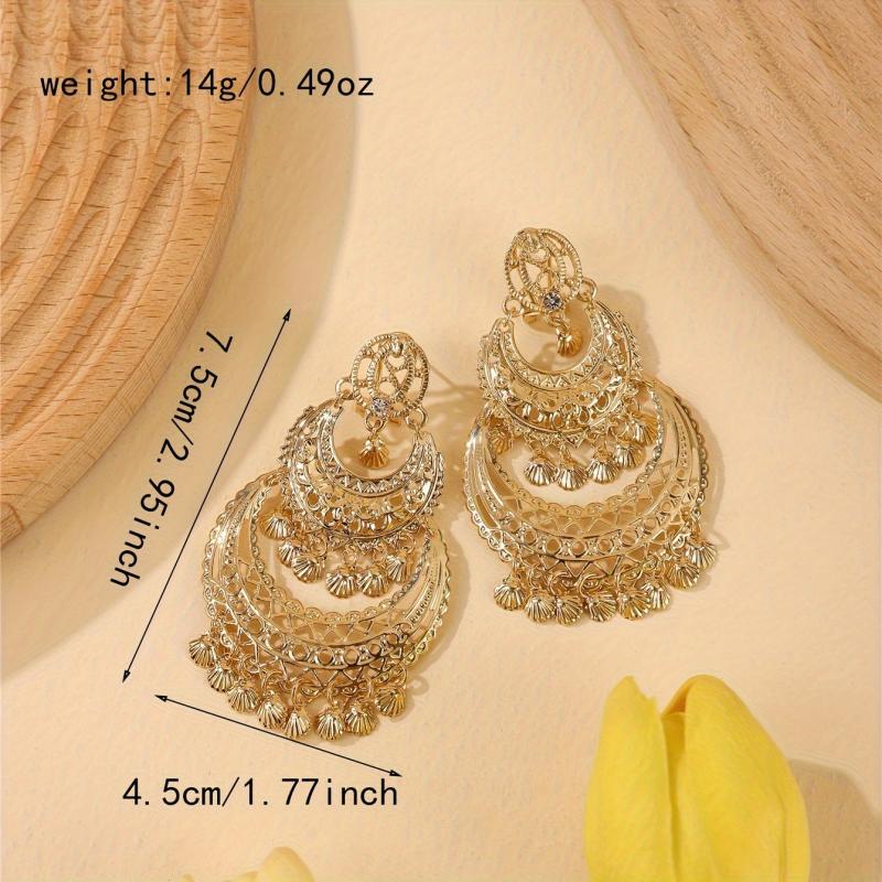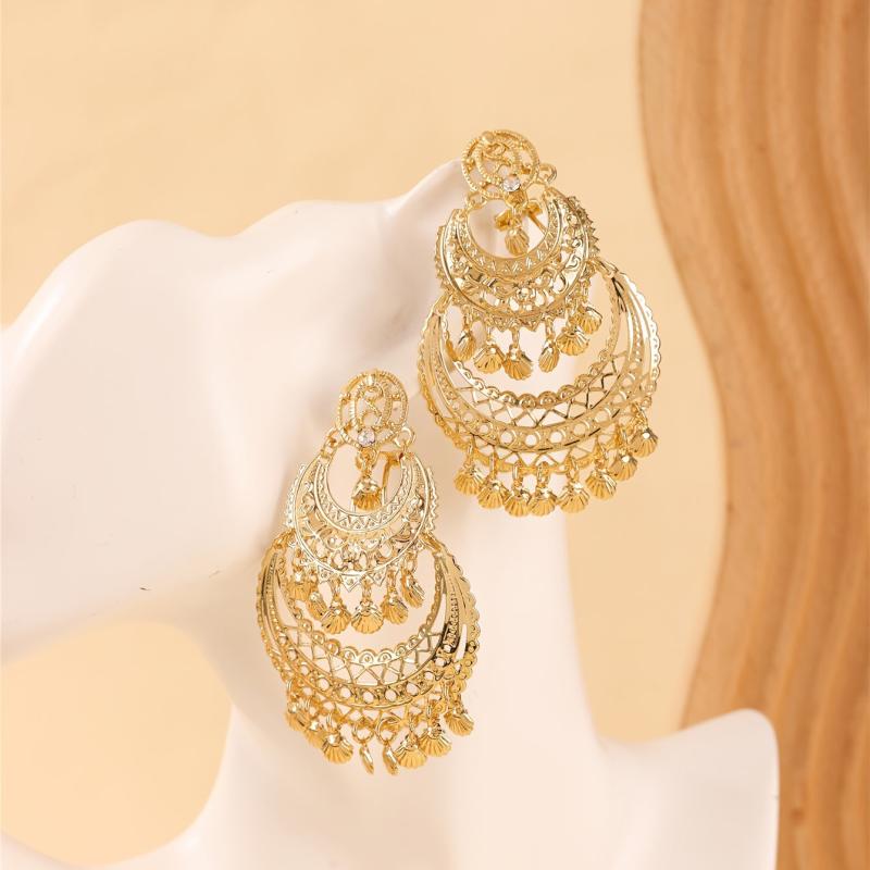 Women'S Golden Dangling Earrings Retro Hollow Wedding Wear Jewelry